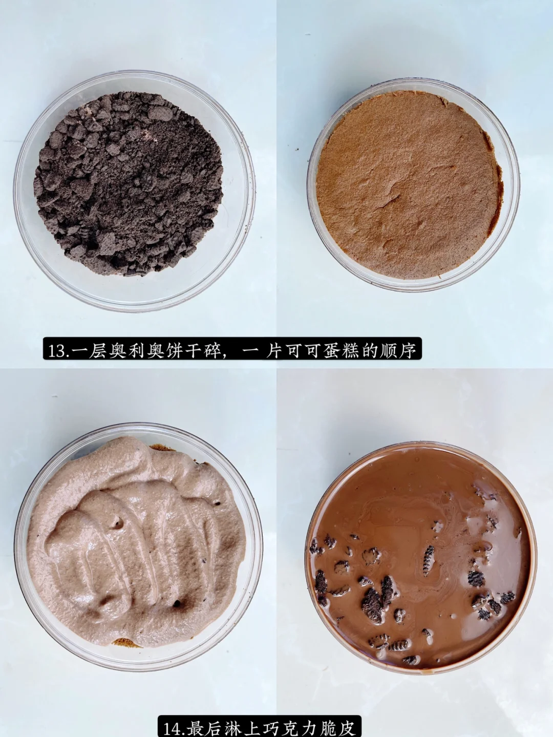 6️⃣组装:巧克力甘纳许➕奥利奥饼干碎➕可可蛋糕胚➕巧克力甘纳许➕奥利奥饼干碎➕巧克力脆皮层