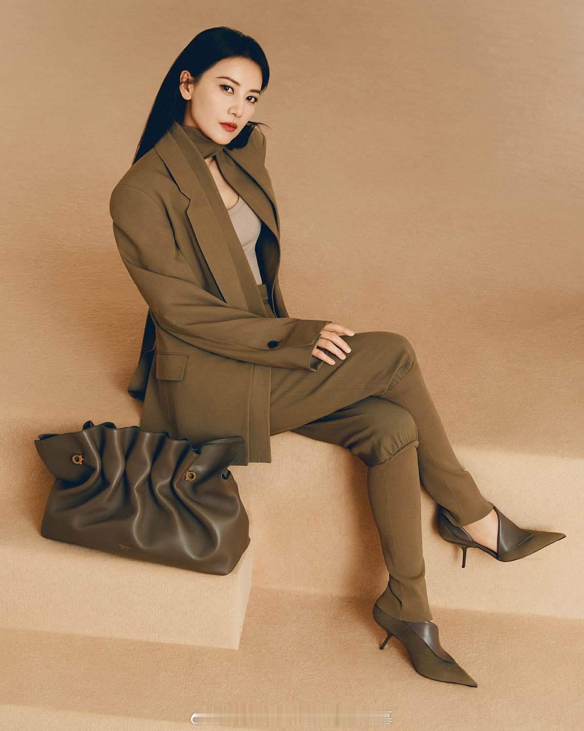 高圆圆 穿搭展现了简约优雅的多元风格,通过橄榄绿、黑色、卡其色与白色的巧妙搭配,