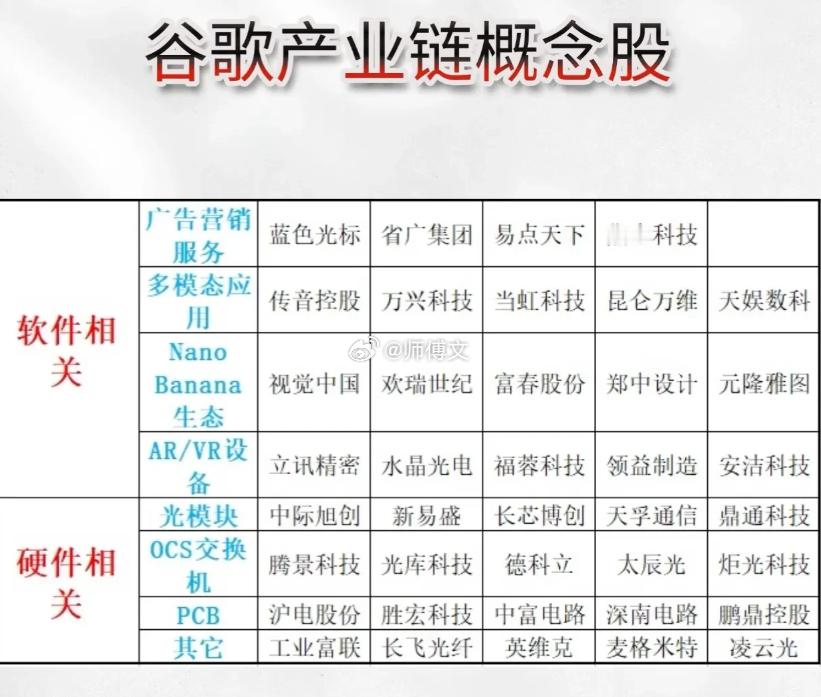 谷歌生态链驱动科技产业新机遇,软硬件板块协同发展引关注谷歌作为全球科技巨头,其产业链的持续扩展正带动软硬件多个细分领域迎来新一轮发展机遇。从软件服务到硬件支持,相关概念板块逐渐成为市场关注的焦点。在软件层面,广告营销服务、多模态应用、新兴生态应用及AR/VR内容等领域展现出较高活跃度。伴随人工智能与交互技术的不断升级,相关企业持续探索技术融合与场景落地,推动产业应用边界不断拓宽。硬件方面,光模块、OCS交换机、PCB等关键组件作为数字基础设施的核心部分,受益于全球算力建设与数据中心投入的加大,市场需求呈现稳步增长态势。此外,散热、光纤、制造服务等配套板块也在技术迭代中迎来新的发展契机。从市场情绪来看,谷歌产业链相关概念近年来保持较高热度,尤其在AI、多模态、AR/VR等前沿方向备受资金与技术双轮驱动。尽管行业整体发展潜力被广泛看好,投资者仍需注意技术演进、市场竞争及国际环境等因素带来的不确定性,理性看待产业链中各环节的成长节奏与波动风险。未来,随着技术持续突破与应用场景的不断落地,相关板块有望呈现结构性的发展机遇。