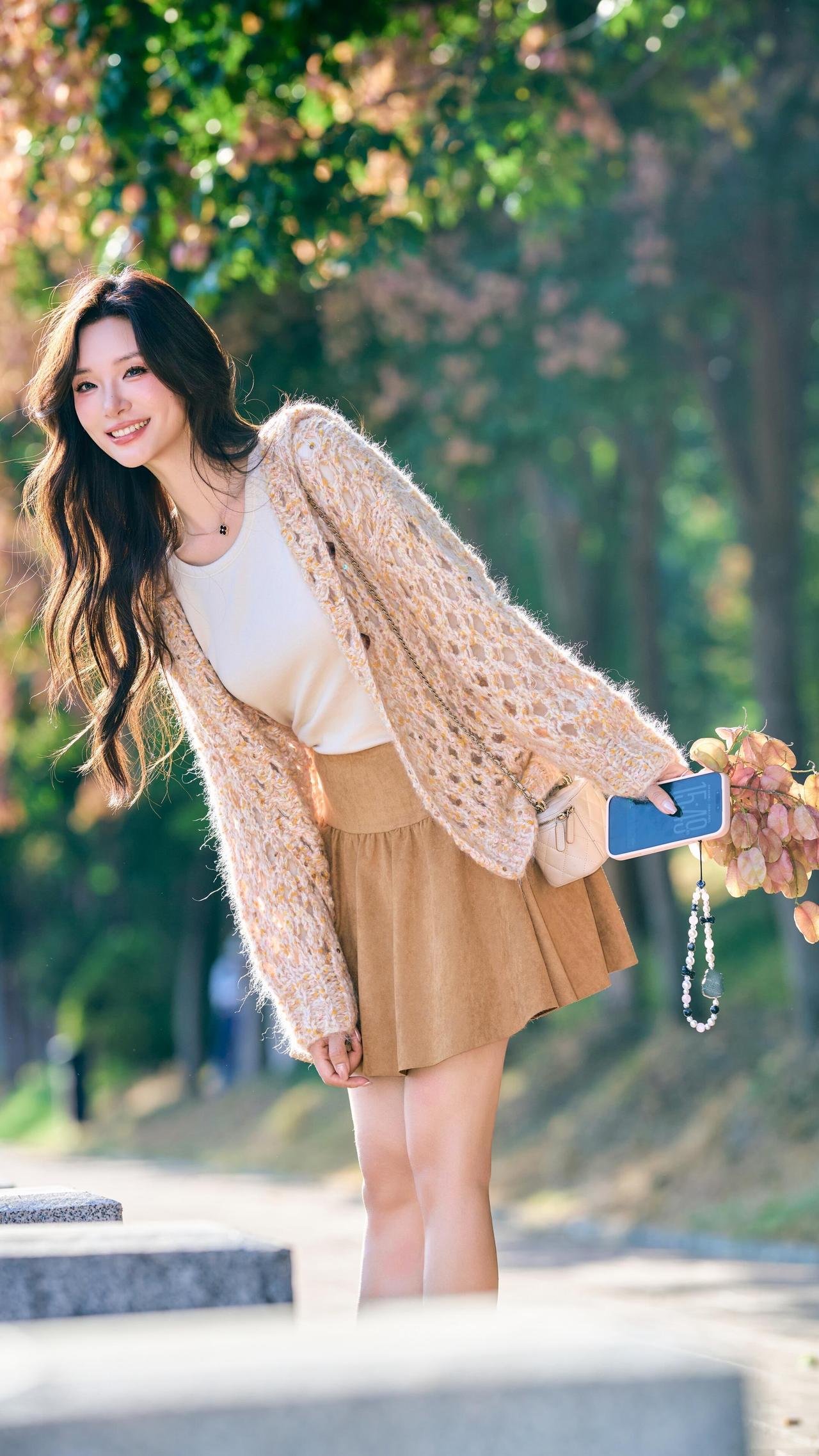 温柔甜美的少女穿搭,白色毛衣搭配蓝色丝带,清新自然。 淡淡的粉色毛衣 温柔毛衣少