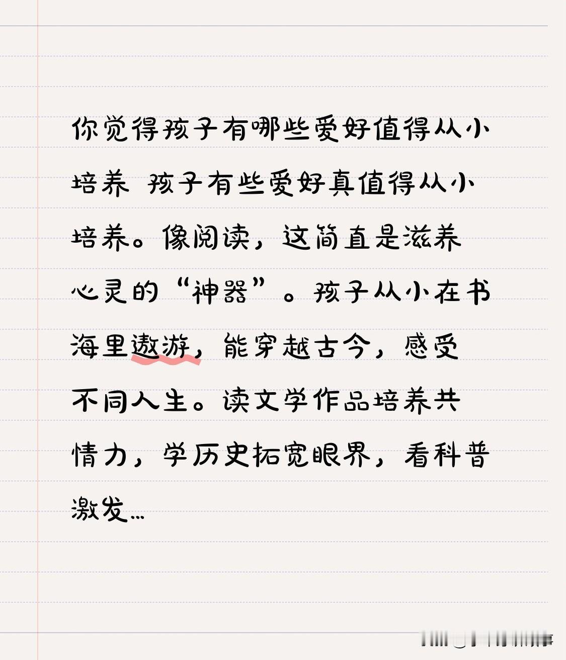 你觉得孩子有哪些爱好值得从小培养孩子有些爱好真值得从小培养。像阅读,这简直是滋