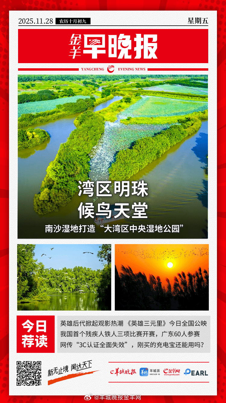 #金羊早晚报# 在“百千万工程”一线,广东青年书写青春答卷 展现史前农牧业交流场景,石峁遗址最新科学研究成果发布 网传“3C认证全面失效”,刚买的充电宝还能用吗?一文了解 如何区别甲流和普通感冒?怎样预防?一文读懂 当代孩子都在烦恼什么?调查显示这三项来源排行前三 变“经验种菜”为“标准种菜”,广州优质生菜是这样种出来的 南沙湿地打造“大湾区中央湿地公园”,官微导航同步更名 国家统计局:1月至10月全国规模以上工业企业利润增长1.9% 《英雄三元里》粤语预告片上线!英雄后代相聚点映掀起观影热潮 十五运会和残特奥会公益捐赠总额超1.7亿元 专家:日本在台湾问题上“越轨”将承担恶果 28变19 乌原则同意美国提出的新版和平协议 更多精彩报道,请扫码关注羊晚全媒体报道! #香港大火已完成灭火程序##香港大埔发生火灾##中日外交局势##俄乌冲突#