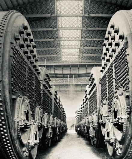 早期舰船燃煤锅炉需要数百号人来填煤,像泰坦尼克号邮轮,因为搭载着29个锅炉拥有159台煤炉,所以每天需要消耗高达660吨煤炭。(搭载煤6611吨)所以光是给泰坦尼克号锅炉里填煤的锅炉工就有280人,日消耗660吨意味着每人每天要往煤炉里填上2吨多的煤。 1912年春天,白星航运公司旗下的巨轮——泰坦尼克号,正准备开启那场被载入史册的处女航。 人们总爱谈论它的奢华:金碧辉煌的餐厅、华丽的舞厅、镀金的扶手、闪耀的吊灯,但鲜有人知道,这艘“海上宫殿”在甲板下隐藏着一座“地狱”——那是燃煤锅炉的世界。 泰坦尼克号配备了29个巨大的锅炉室,159台煤炉,为了驱动两台四缸往复式蒸汽引擎和一台蒸汽涡轮机,每天都要吞下约660吨煤炭。 为了满足这头钢铁巨兽的“胃口”,船上储备了6611吨煤——那几乎是整艘船的灵魂燃料。 在船体的底层甲板上,灯光昏暗、温度高达50摄氏度以上的锅炉舱里,生活着一群与上层世界格格不入的人——锅炉工与司炉工。 他们是“隐形的乘客”,没有豪华的舱室,没有鲜花与掌声。他们的工作,只有一个字:填煤。 每天清晨,当上层甲板的乘客还在银匙碰瓷杯的叮当声中享用早餐时,锅炉舱的工人们已经开始了与火焰的搏斗。 这里有约280名锅炉工人,按照轮班制度,每人每天要向火口中填入2吨以上的煤。这意味着每人每天要铲动上千铲煤,挥汗如雨、满身煤灰。 他们的脸早已看不出原本的颜色,只能从牙齿的白与眼睛的亮中分辨出人形。 锅炉舱的空气中弥漫着煤灰和蒸汽,呼吸都带着灼热。工人们赤裸着上身,只穿一条短裤,皮肤被煤烟熏得乌黑,手掌满是老茧。 铲煤是一种近乎机械的劳动,每一次挥动铁锹,都会发出沉重的金属碰撞声。火口张开如兽,吐出橘红的光芒,灼人肌肤。司炉工负责控制炉温,锅炉工则不断往里添煤,确保火焰稳定燃烧。 每个锅炉房都有自己的节奏:嘶嘶的蒸汽声、嘭嘭的金属门声、呜呜的汽笛声交织在一起,如同一曲地狱的交响乐。 通风口不断将热浪和烟尘往上抽,但空气仍旧混浊。 有人因为中暑倒下,有人被煤灰呛得咳出血丝,但没人有资格停下。对他们来说,停一铲煤,就可能让锅炉压力下降,让船速减慢。 锅炉舱的温度高得惊人。即使是冬夜,船外海风呼啸、冰冷刺骨,而底层的锅炉房却像个蒸笼。铁皮壁板被烤得发烫,汗水流到身上立刻蒸发成白雾。 许多工人随身携带一瓶盐水——那是他们抵御脱水的唯一手段。每到换班,工人们从锅炉舱爬上甲板透气,煤灰顺着脖颈流下,像从地狱里爬出的影子。 尽管如此,锅炉工的薪水并不高。为了这份工作,许多人从贝尔法斯特、利物浦、南安普顿远道而来。 他们大多出身贫寒,是码头工人、矿工,或曾经的工厂技工。泰坦尼克号的“地狱工厂”,是他们维持生计的希望。对他们来说,能登上这艘巨轮工作,意味着家人有饭吃。 这些工人住在最底层的船舱,条件简陋,狭窄的铺位和浓烈的煤味混合在一起。每天轮班结束,他们用海水冲洗身上的煤尘,疲惫得几乎说不出话。 有人在信中写道:“上面的人穿着礼服跳舞,我们在下面铲煤生火。可没有我们,船就一寸也走不动。” 4月14日夜晚,悲剧降临。泰坦尼克号撞上冰山时,许多锅炉工正值夜班。撞击让船体剧烈震动,锅炉房的钢板传来一阵刺耳的裂响。 有人被震倒,有人立刻意识到出事了。短短几分钟后,前方几个锅炉舱进水,冰冷的海水瞬间涌入,扑灭了炉火,蒸汽与海水混合,形成滚滚白雾。 锅炉工们没有慌乱。很多人没有去逃生,而是本能地冲向尚未被淹的炉口。他们要做的,是维持船上电力与蒸汽供应——因为那意味着可以让抽水泵继续运作,让无线电发报机继续求救。 历史记载中,有近百名司炉工与锅炉工牺牲在机舱,他们是最先面对死亡的人。 没有一个人上过救生艇,他们留在船舱里,与火焰、蒸汽、海水同归。最后的时刻,锅炉房被海水吞没,那些被汗水与煤灰浸透的身影,永远消失在漆黑的深海中。