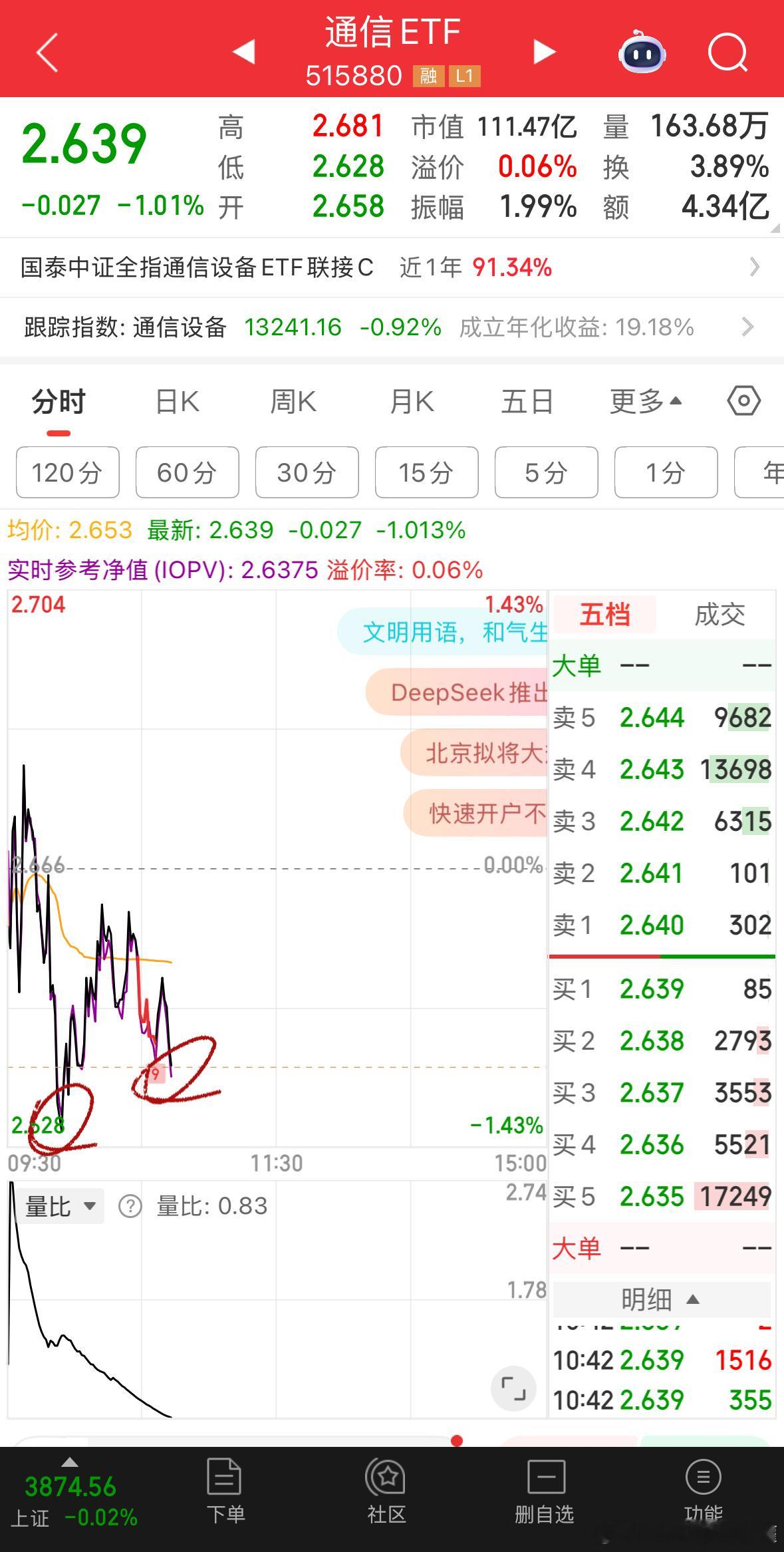 场内接着给通信ETF找买点,现在暂时没有信号。