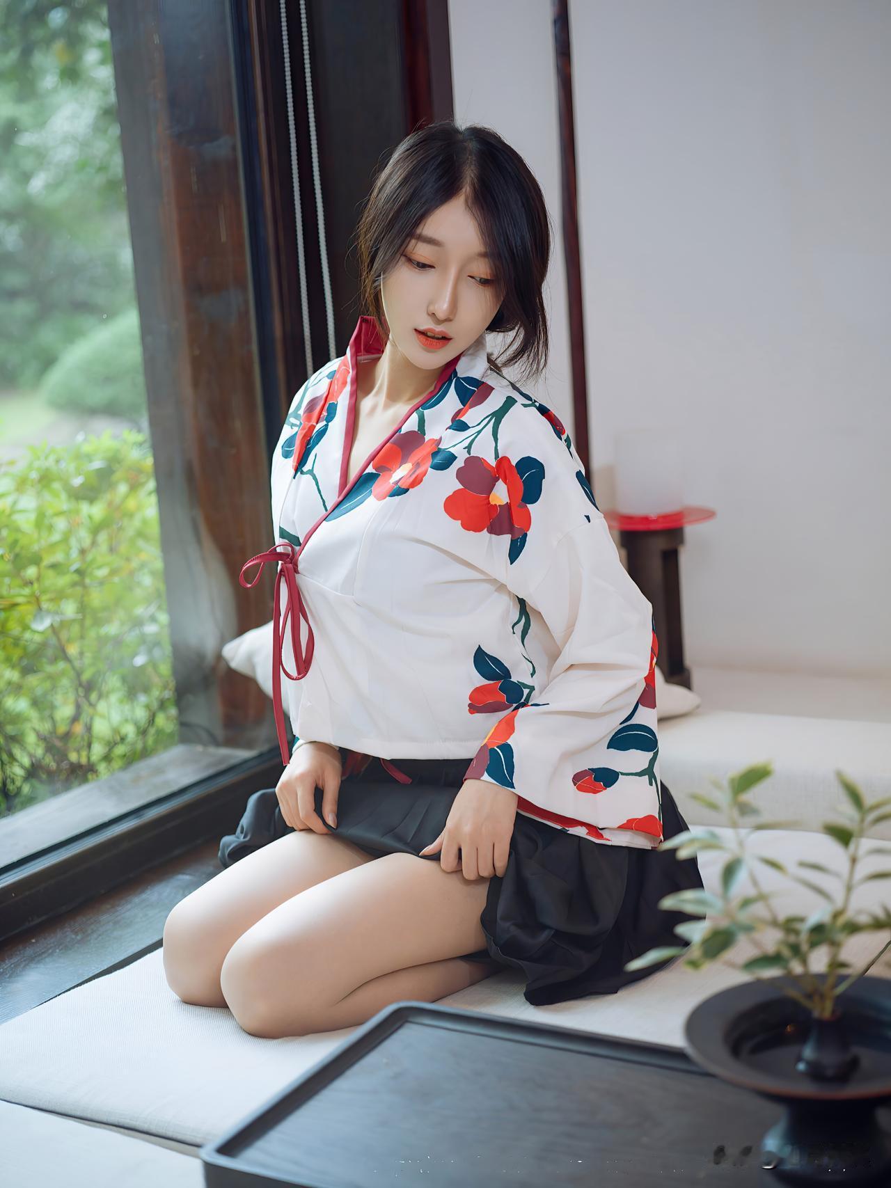 墨裙薄透荷边曳,倚壁垂肩缀玉柔