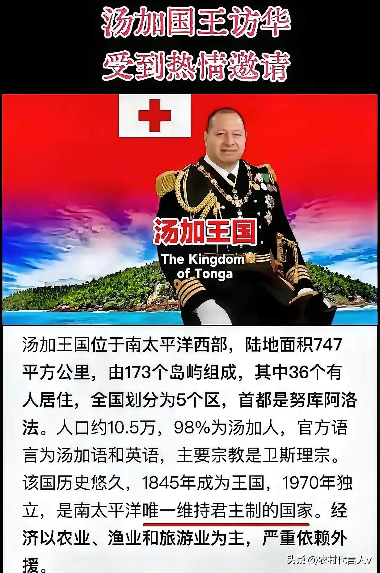 11月份日本因为涉台言论跟中国闹僵时,这时候中国突然高调接待汤加国王。这个全国才