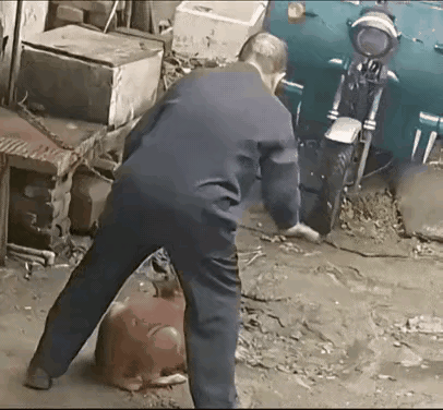 这个老头穿的比较利索,但是心肠绝对是够狠的了,一般人到了这个年纪,绝对不会对一只狗下此毒手的,人上了年纪之后,对于一个正常人来说,多数人都有了慈悲之心,轻易是不杀生的,别说是一只通人气的狗,就是小鸡小鸭,有些老人也是下不了手的,但是画面中的这个老人,但他不紧不慢的样子,真是够狠的了!