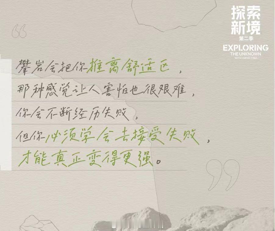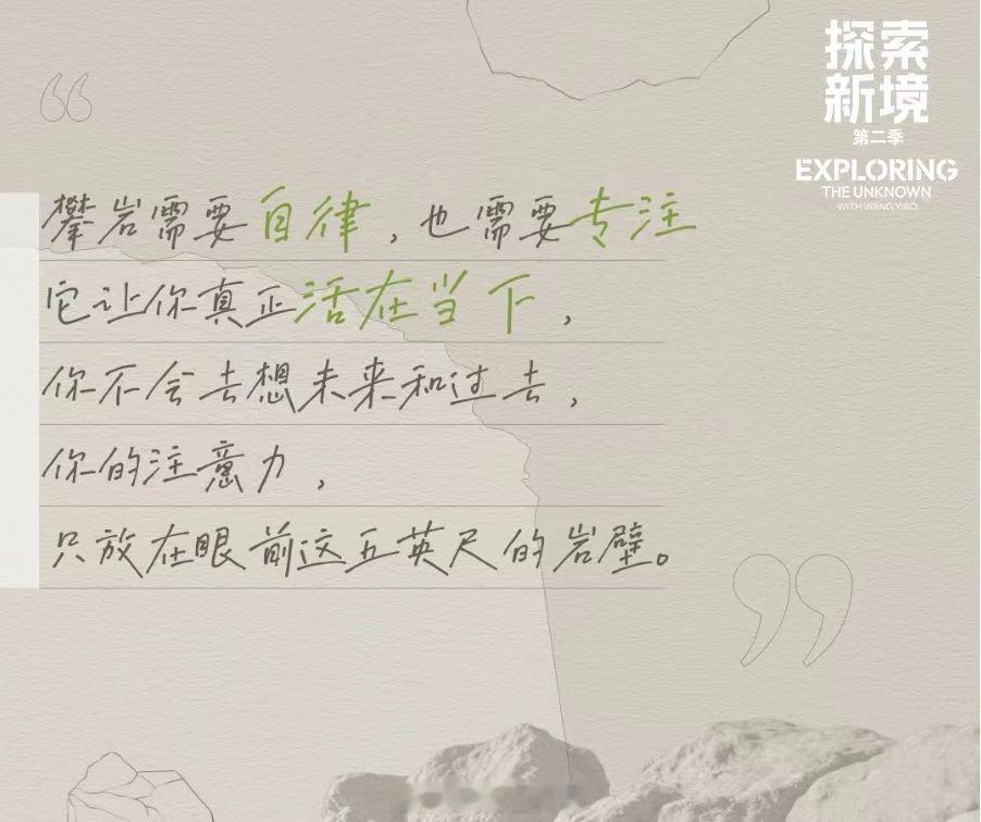 看了第一集,非常的不错。人需要自律更需要专注,人要活在当下。有些失败也是你必须需要接受的,它会使你变得更强。这是我今天看了《探索新境2》第一集最大的感悟