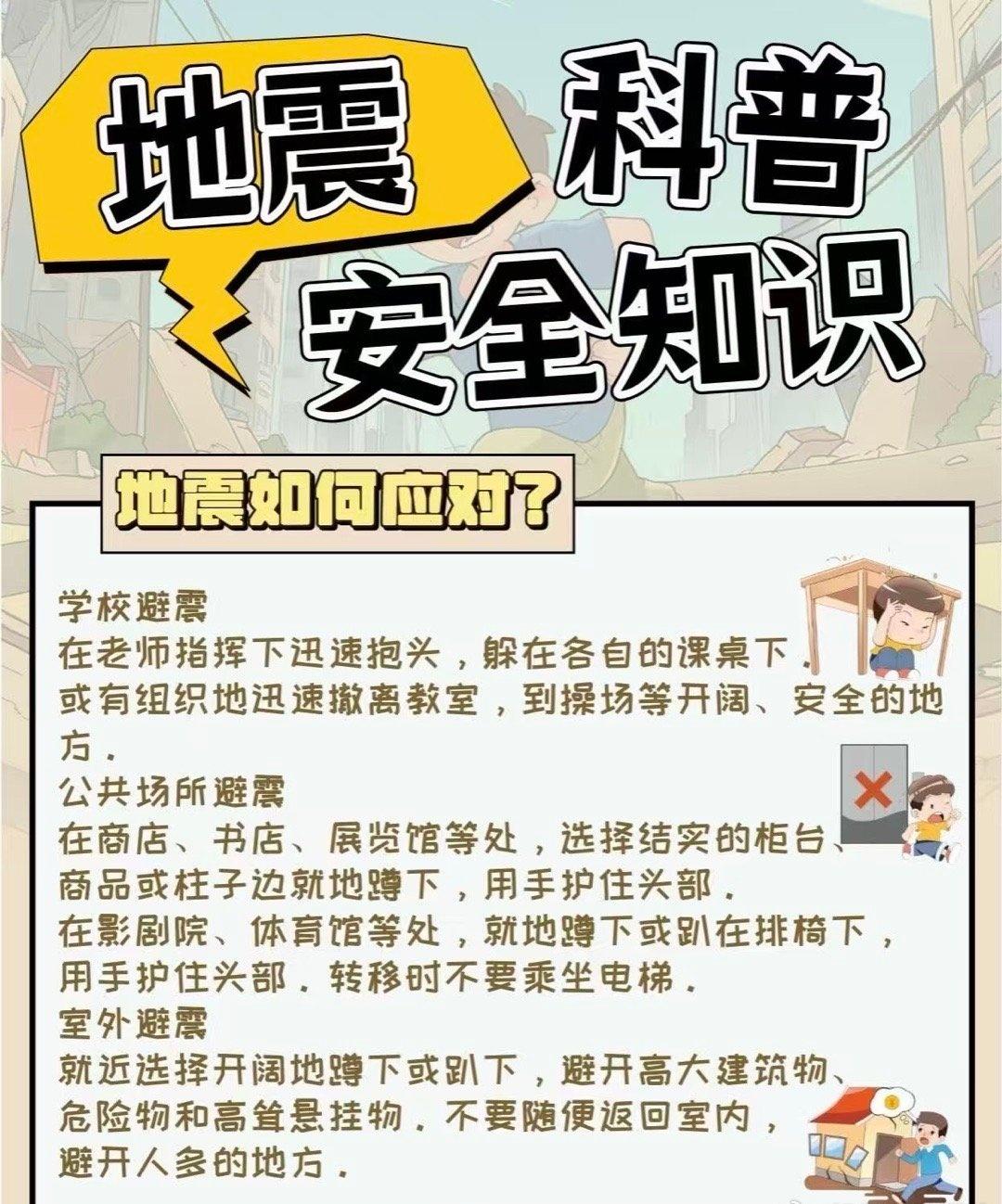 【银科小贴士】🌍地震科普小常识请收好!遇震先护头,躲桌下、承重墙根避险,远离窗户和高空坠物~ 撤离时不乘电梯、不慌乱拥挤,弯腰捂口鼻快速疏散。家中备好应急包,牢记逃生路线!掌握自救技能,平安多一份保障✨ (图源:小红书)