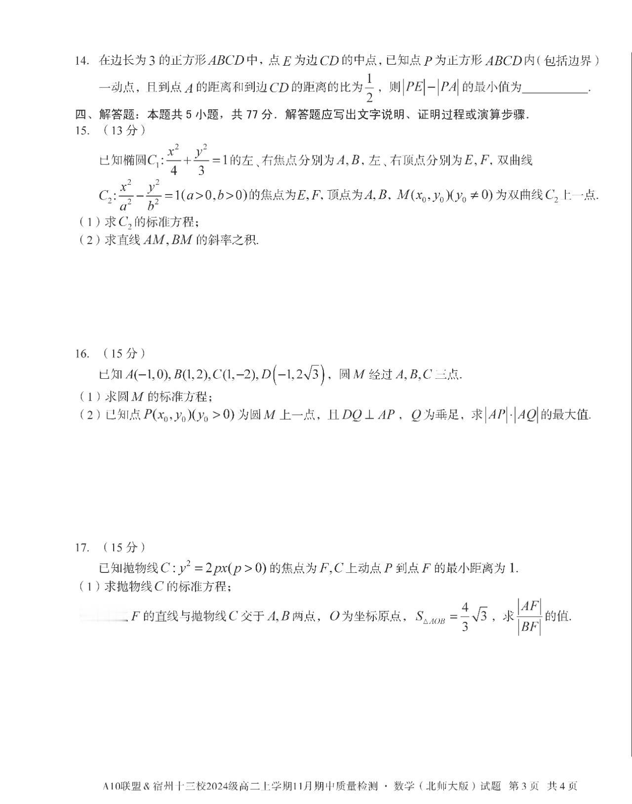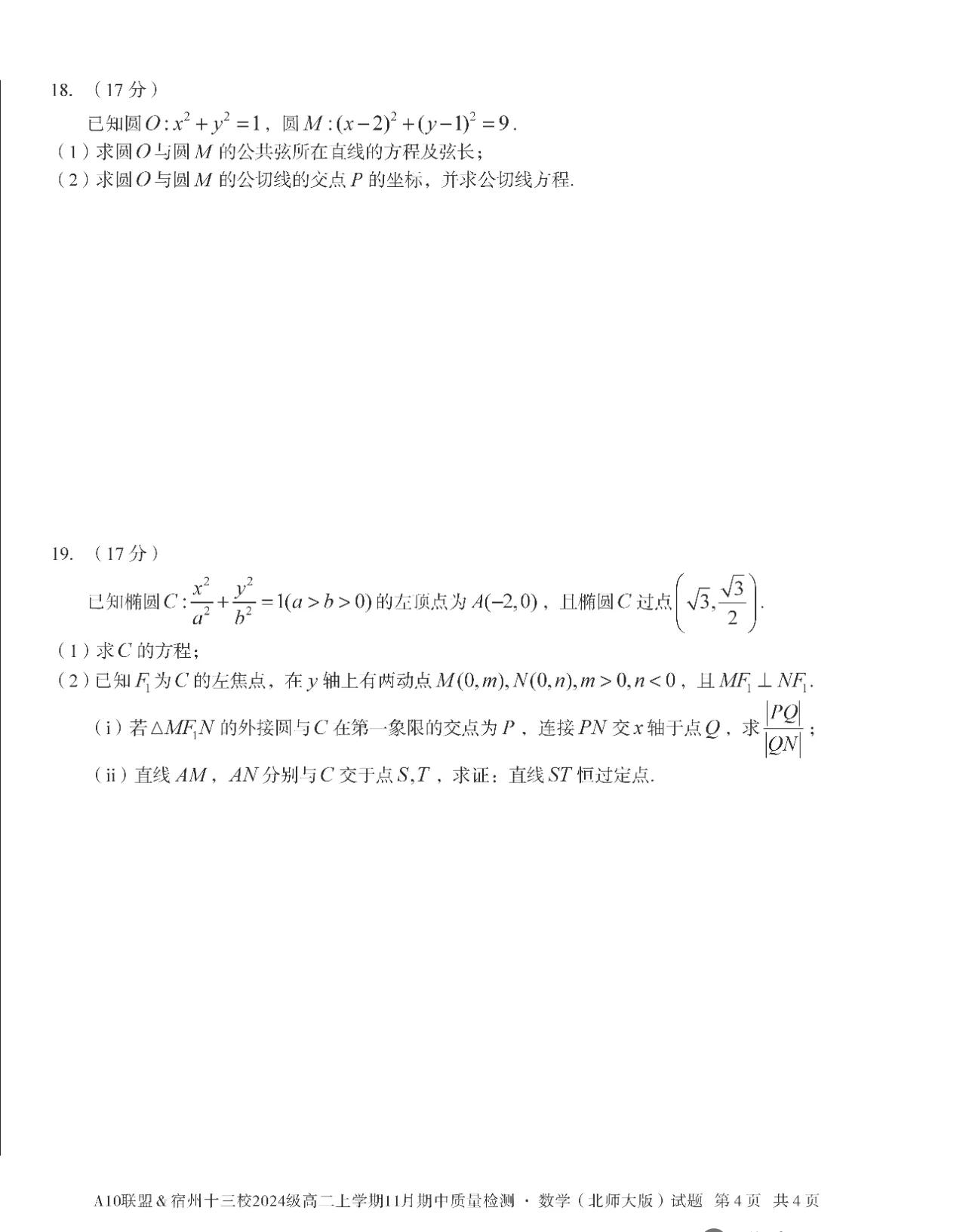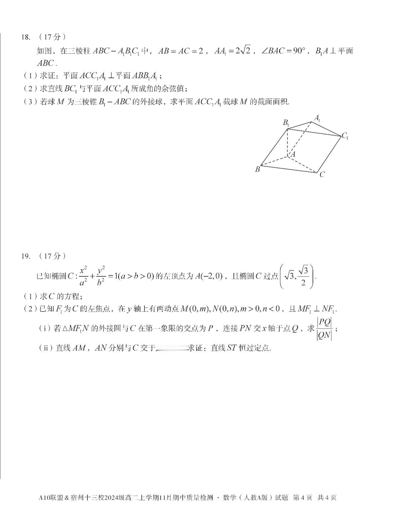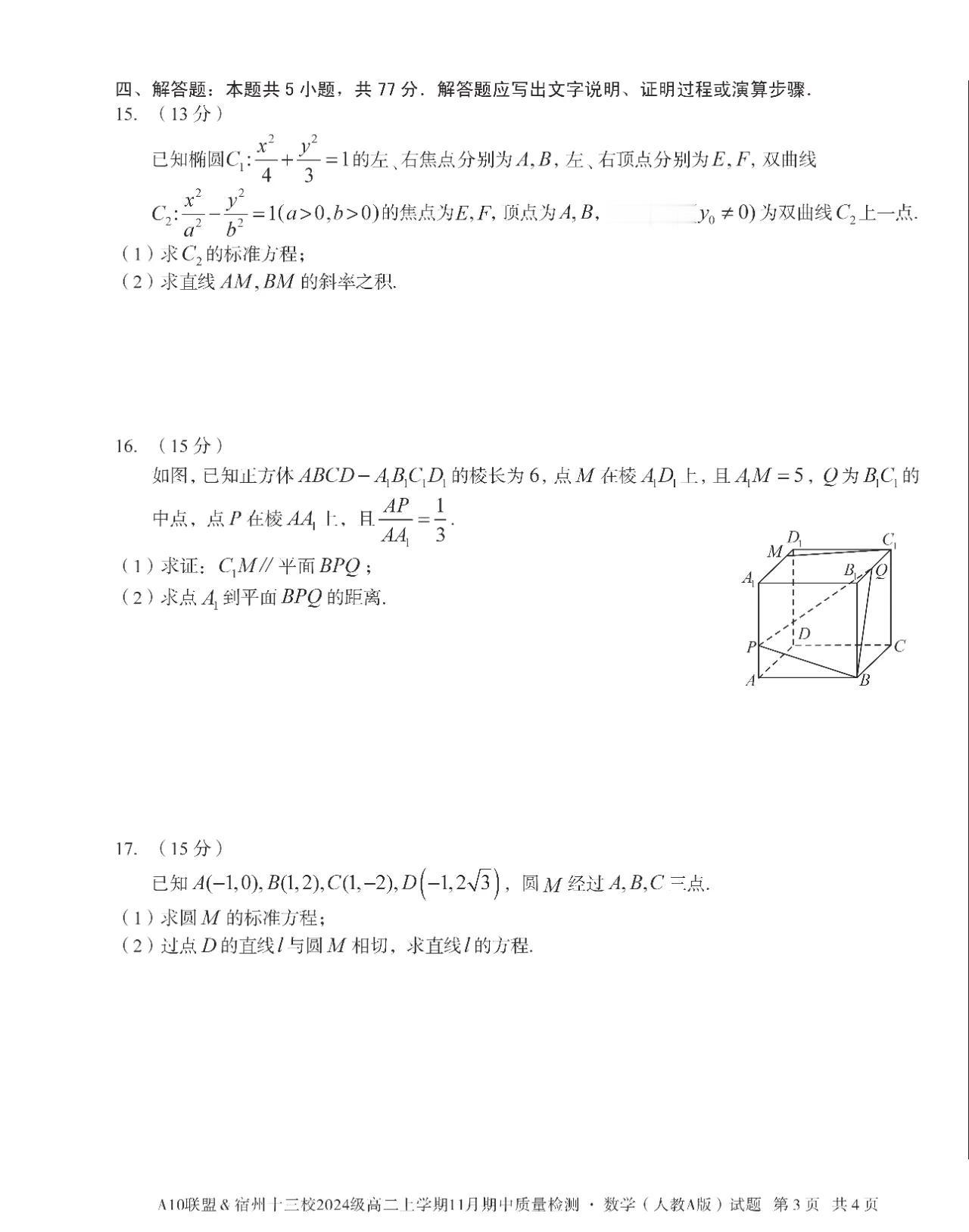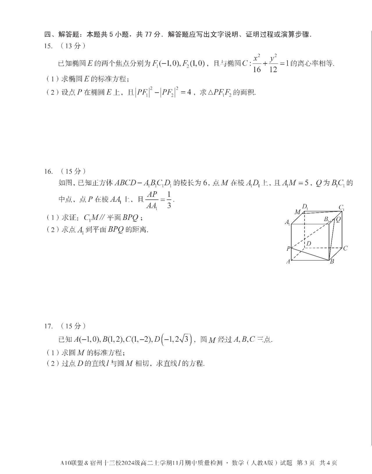 人教A版A、B、C卷和北师大版安徽省宿州高二上数学期中考试详细(单选题多选题填空