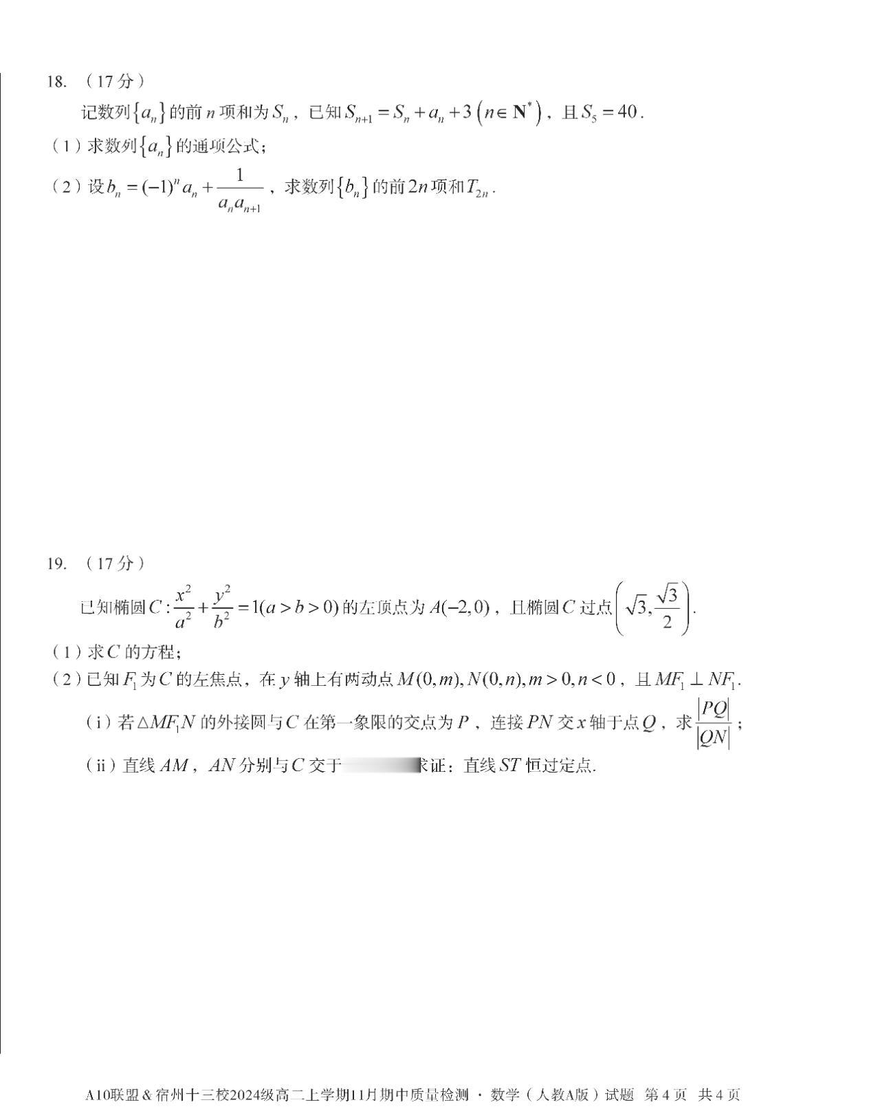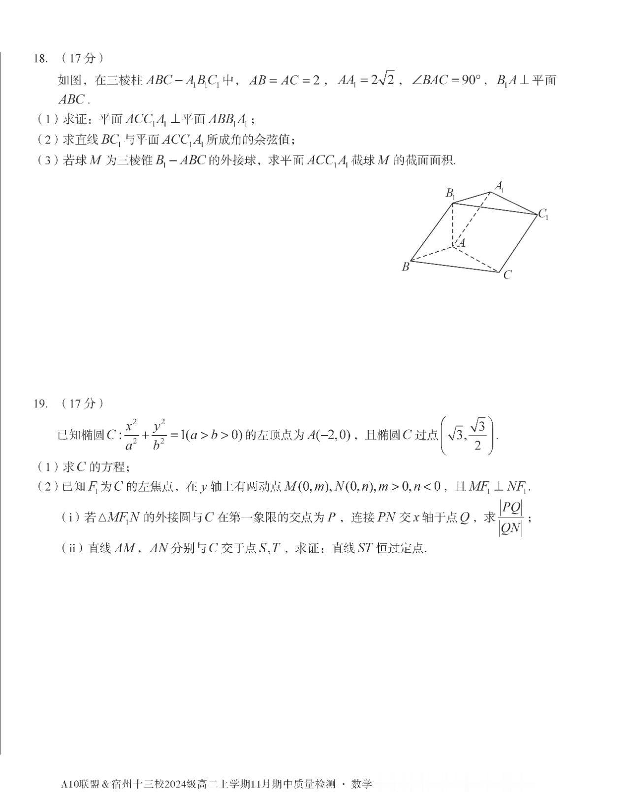 安徽省华师2025年联盟高一、高二数学上 期中 大题及解答。