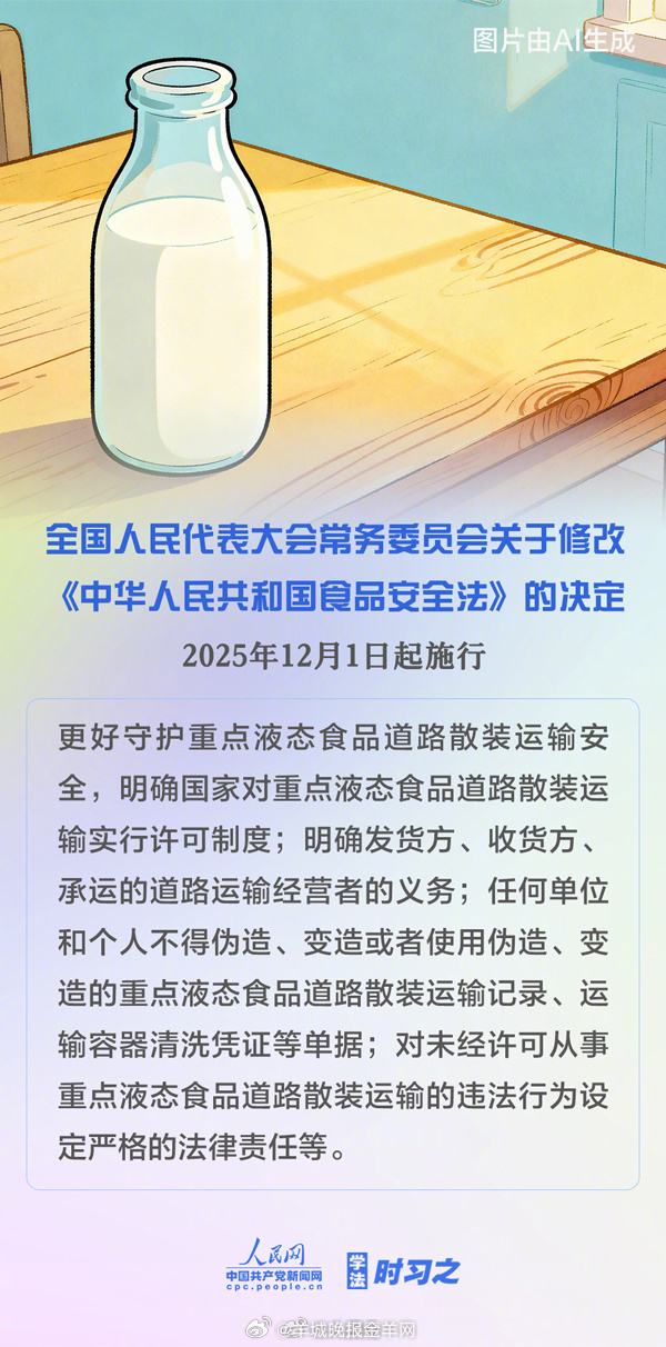 【收藏!#12月新规#来了!】更好守护重点液态食品道路散装运输安全;调整风险基金交纳比例;明确餐饮服务连锁企业实行贯通式管理……#12月这些新规影响你我#↓↓#学法时习之#