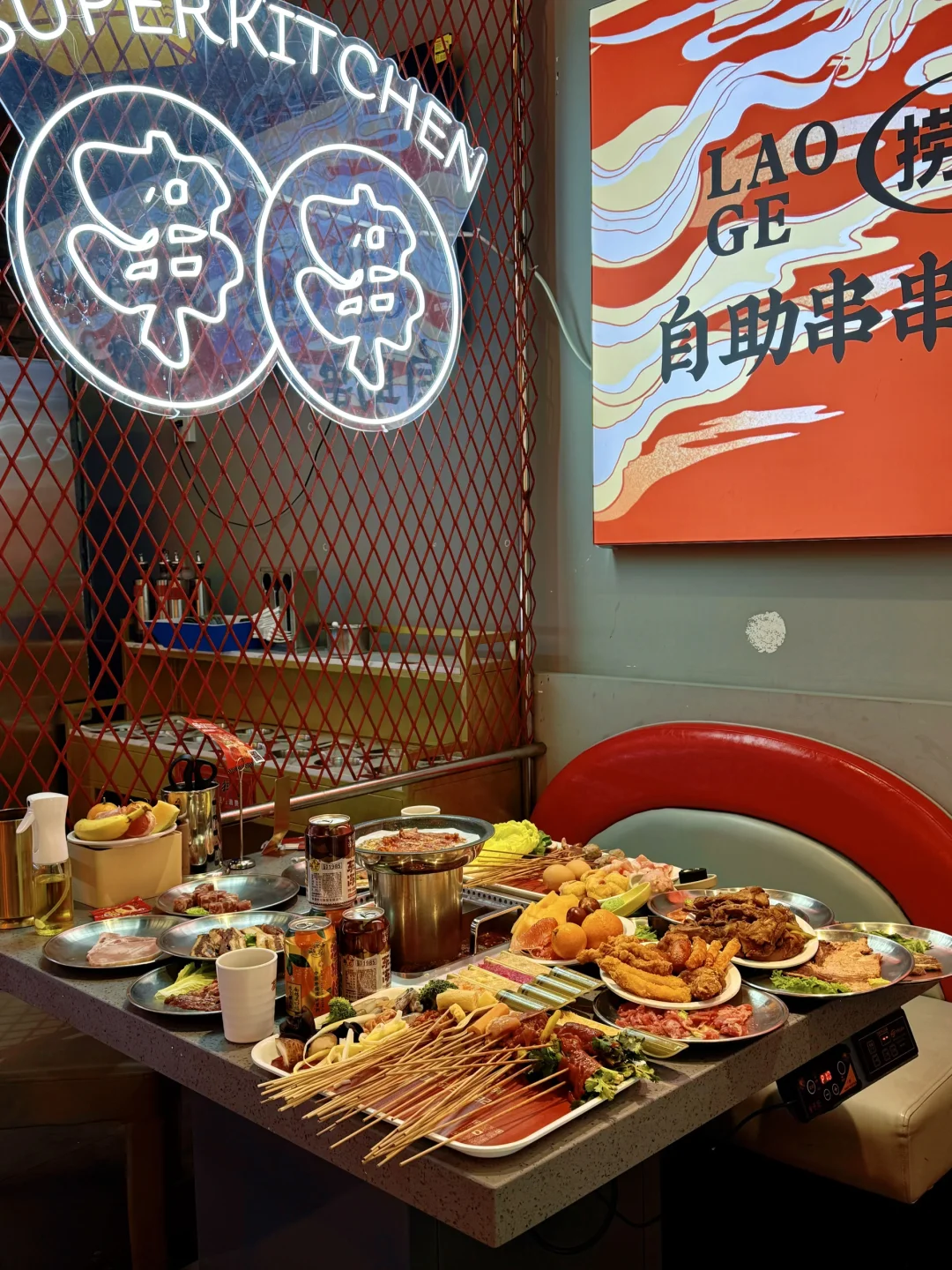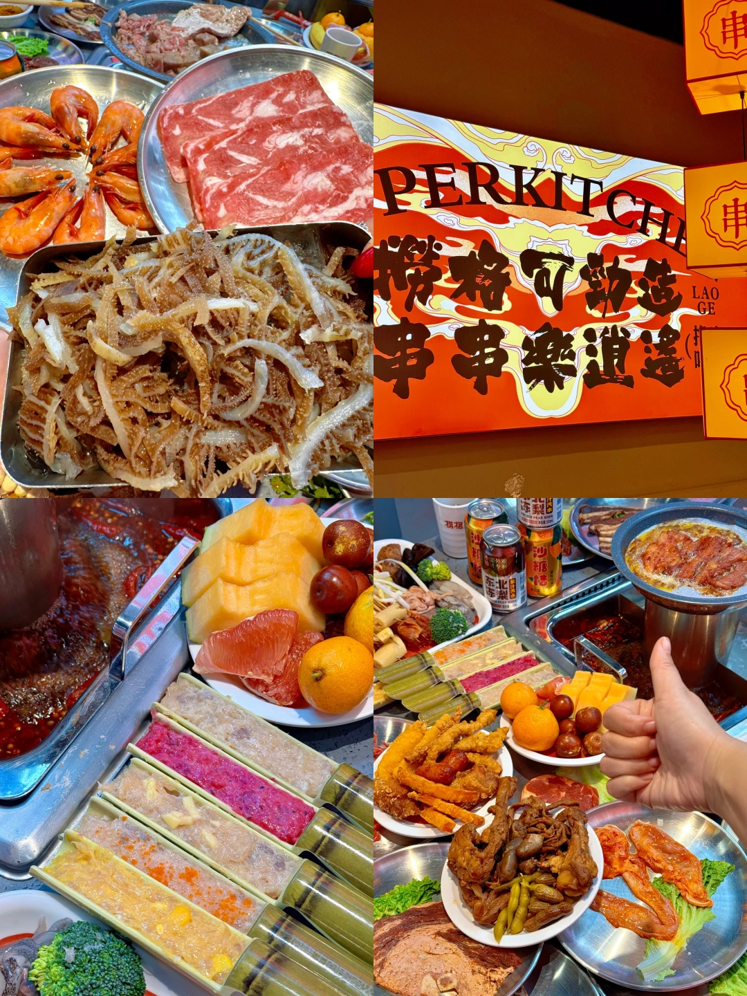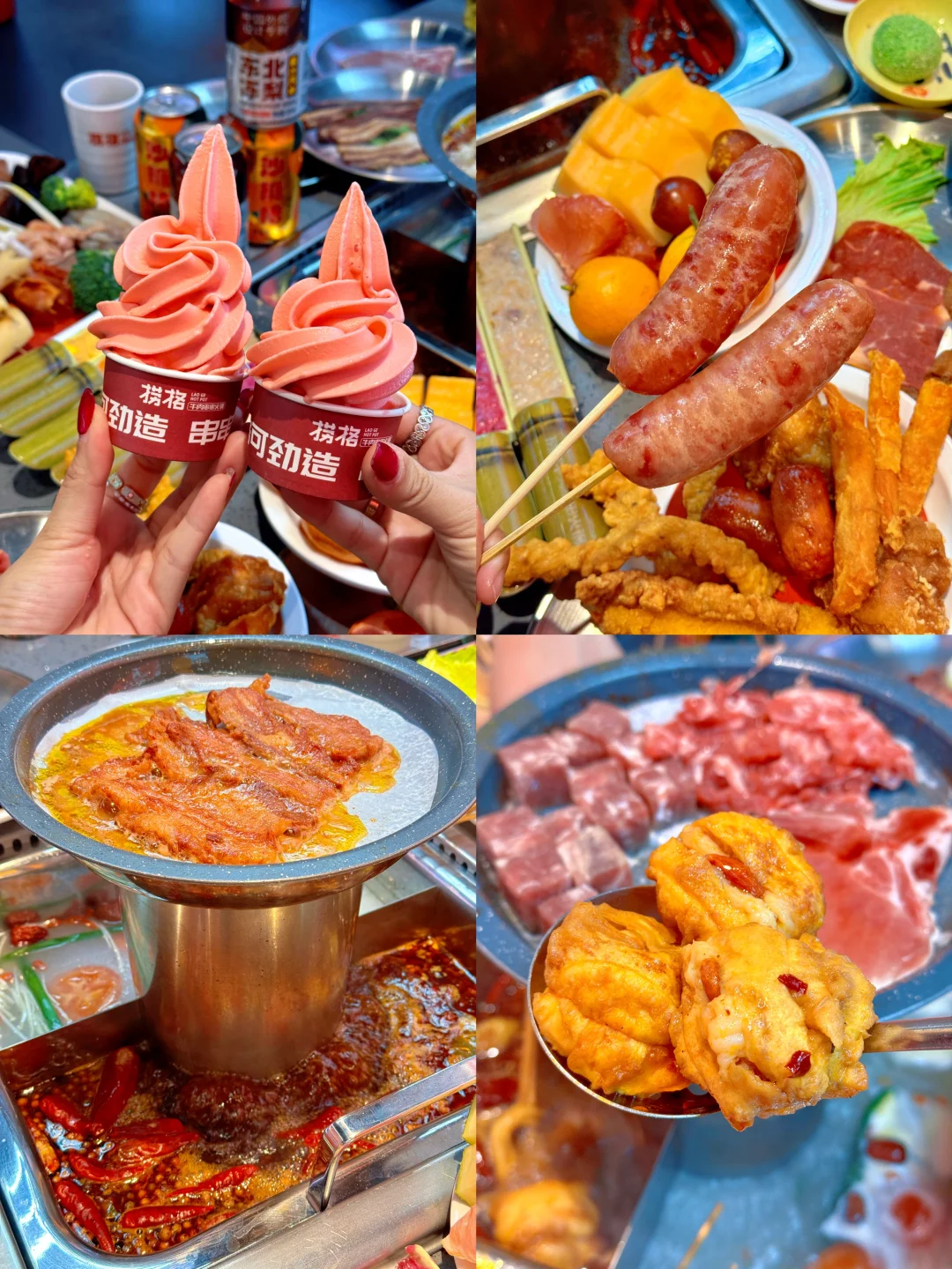 上新之后的捞格简直火锅烤肉爱好者的快乐老家‼️ 串串的品质口感都很不错👍👍上百种随意选 ✔️自助吃到爽✔️毛肚大虾不限量✔️店里上新很快✔️各种口味的荤素食材小食甜品都有,根本不用担心没有自己想吃的… 我巨爱炸货区的🍖小香肠,🍗炸鸡腿,🥓小酥肉,🦴蟹肉棒,红薯条,🌭大块肉的烤肠…配上各种饮料再来几口水果…吃多了也不会觉得腻~ 💡五种口味虾滑(火龙果、原味、芝士、鱼籽、玉米)开始觉得是噱头🥹没想尊的hin不错! 俩人的话一张出头的多一点,学生党友好!速冲!