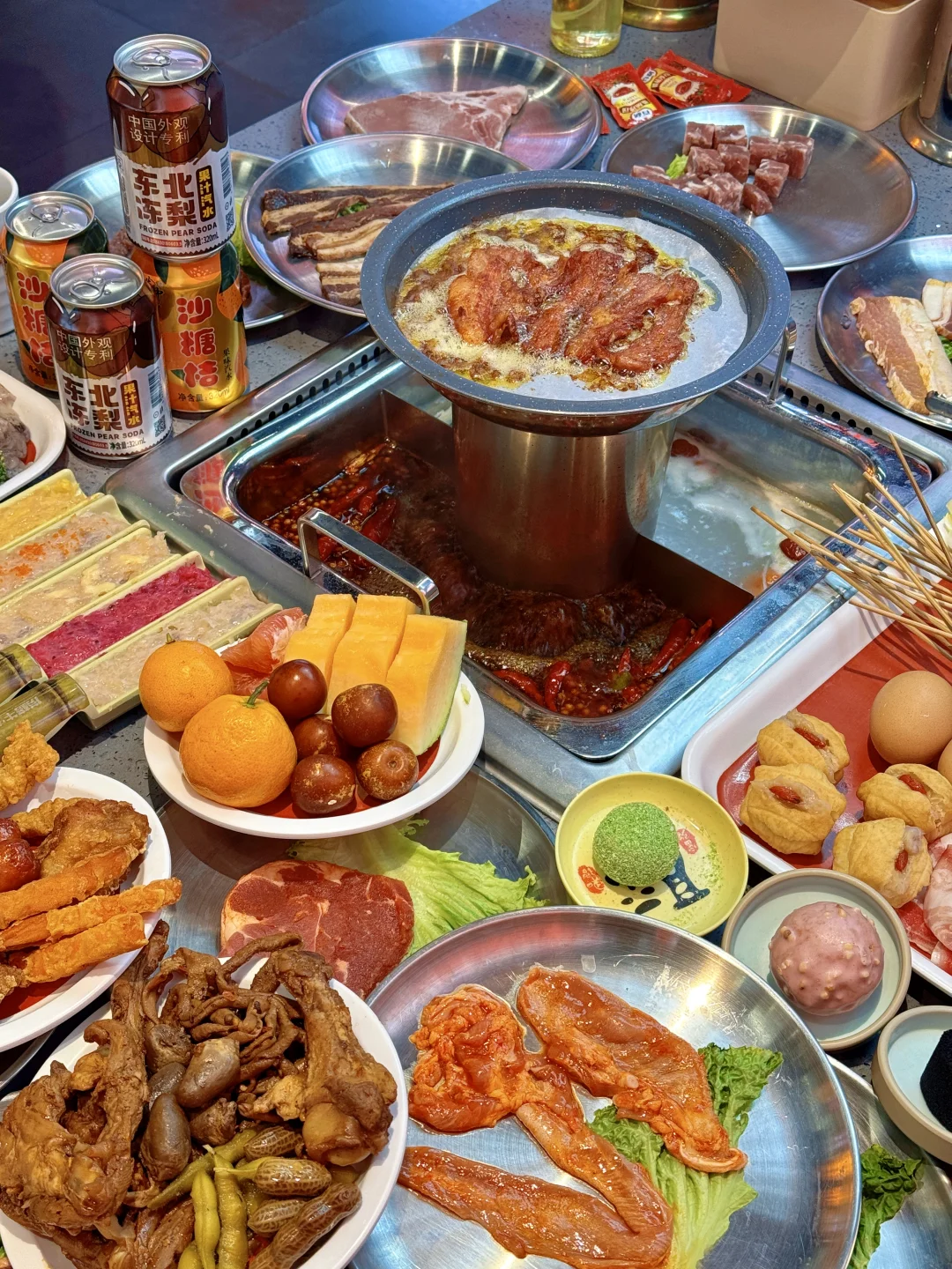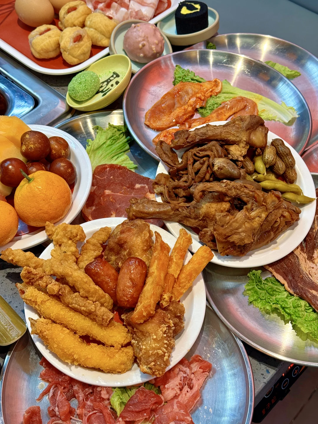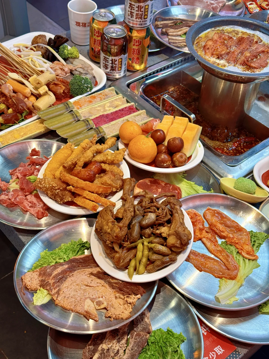 上新之后的捞格简直火锅烤肉爱好者的快乐老家‼️ 串串的品质口感都很不错👍👍上百种随意选 ✔️自助吃到爽✔️毛肚大虾不限量✔️店里上新很快✔️各种口味的荤素食材小食甜品都有,根本不用担心没有自己想吃的… 我巨爱炸货区的🍖小香肠,🍗炸鸡腿,🥓小酥肉,🦴蟹肉棒,红薯条,🌭大块肉的烤肠…配上各种饮料再来几口水果…吃多了也不会觉得腻~ 💡五种口味虾滑(火龙果、原味、芝士、鱼籽、玉米)开始觉得是噱头🥹没想尊的hin不错! 俩人的话一张出头的多一点,学生党友好!速冲!