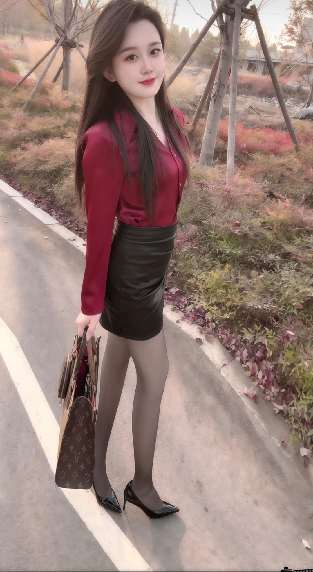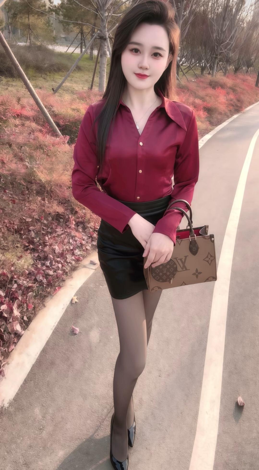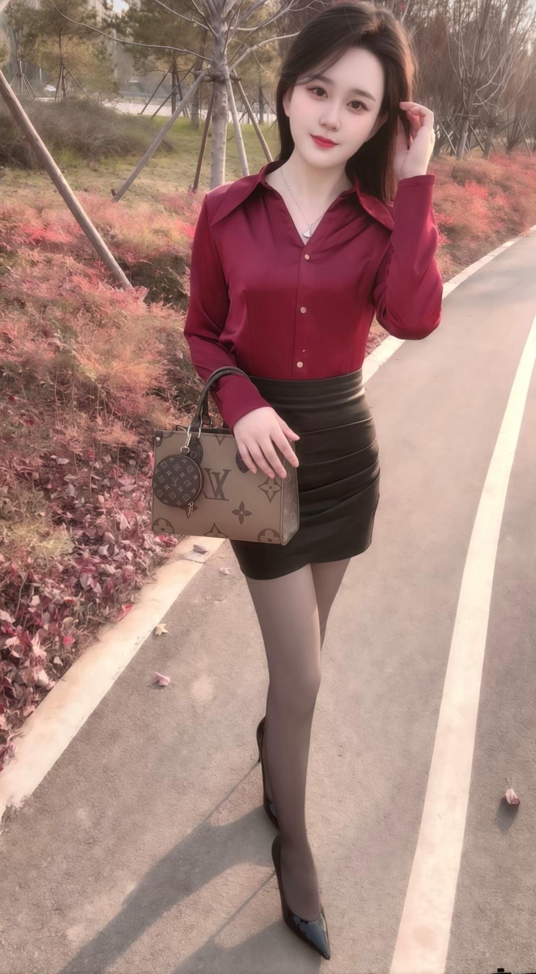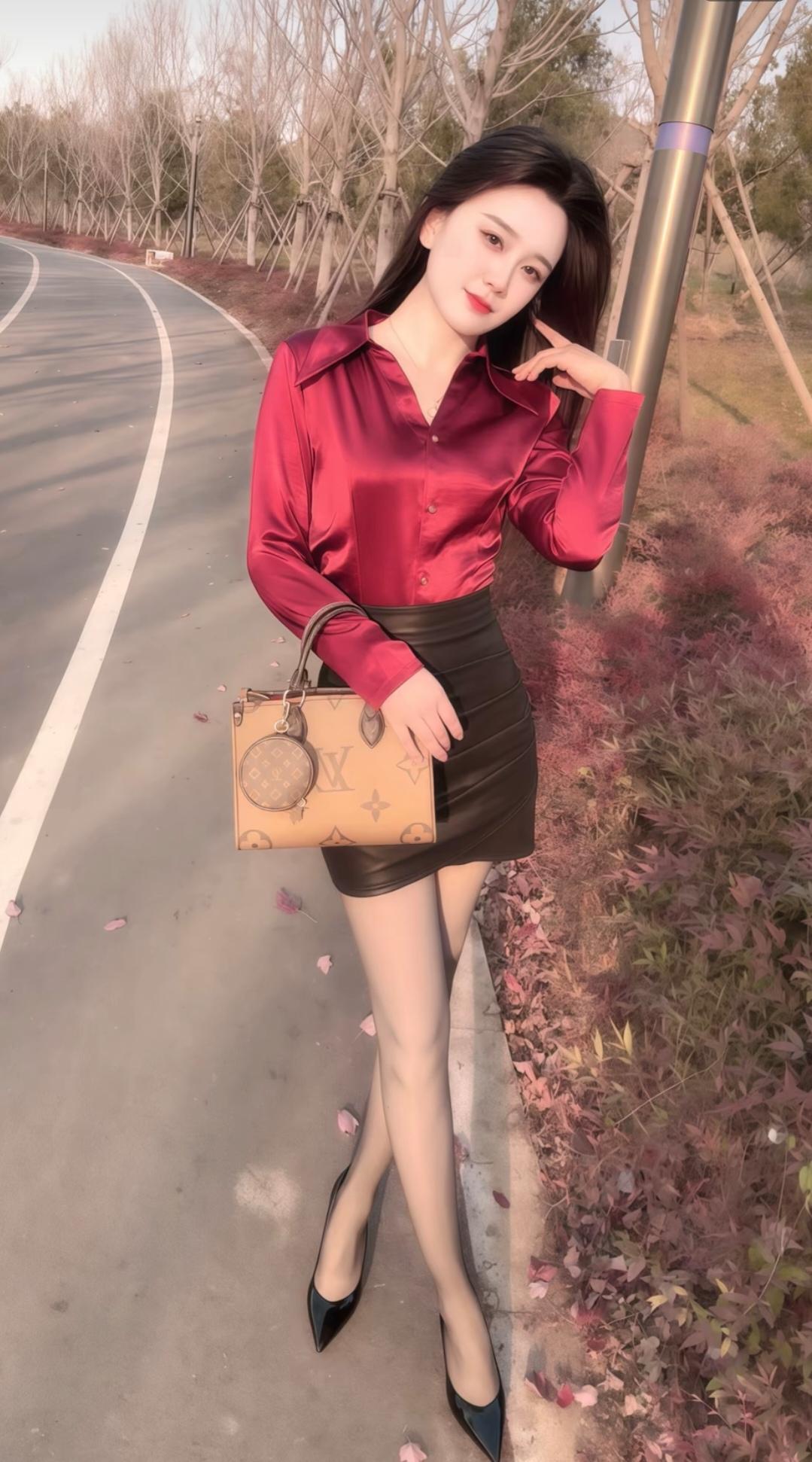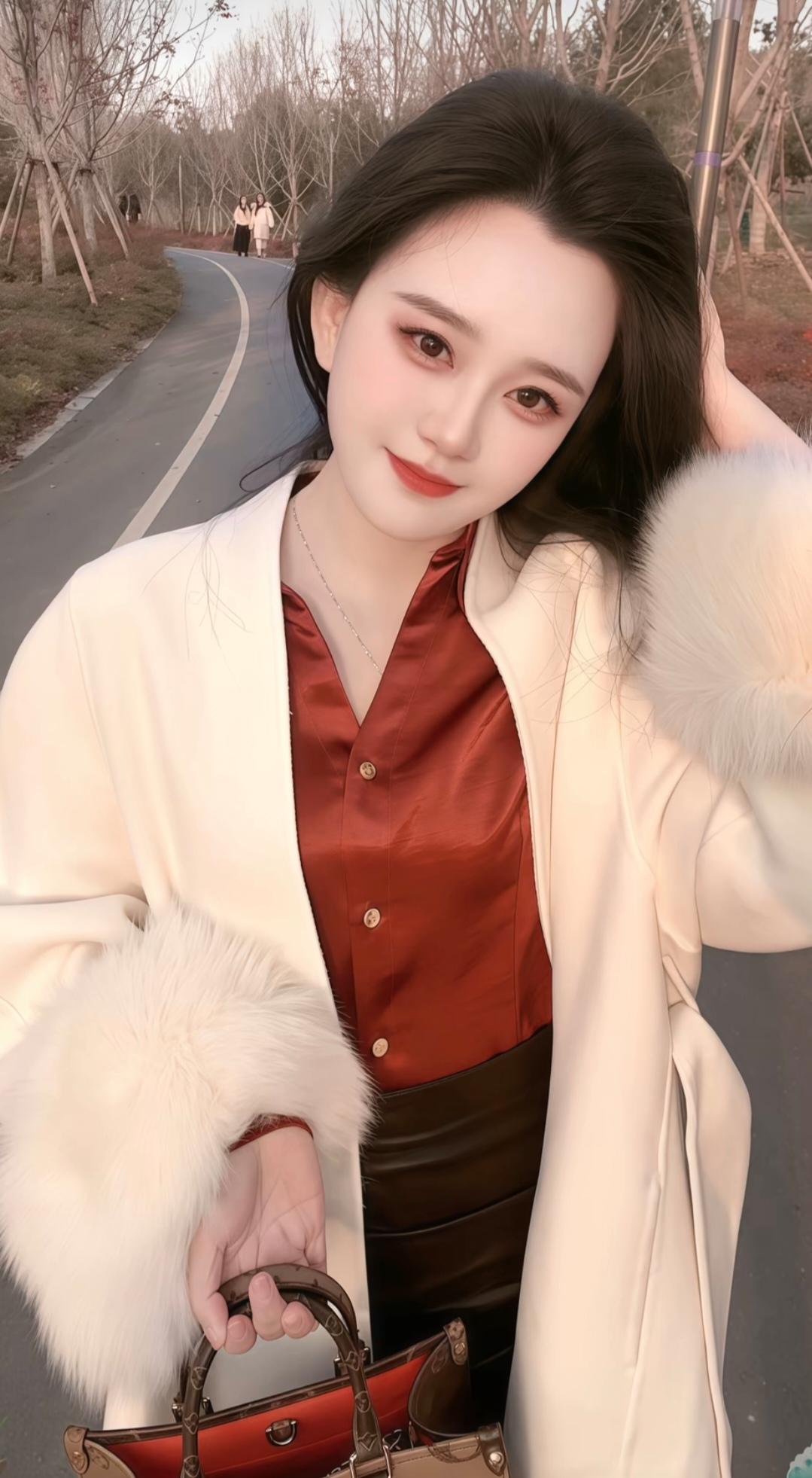 这姑娘穿着皮草外套,站在车前摆姿势。