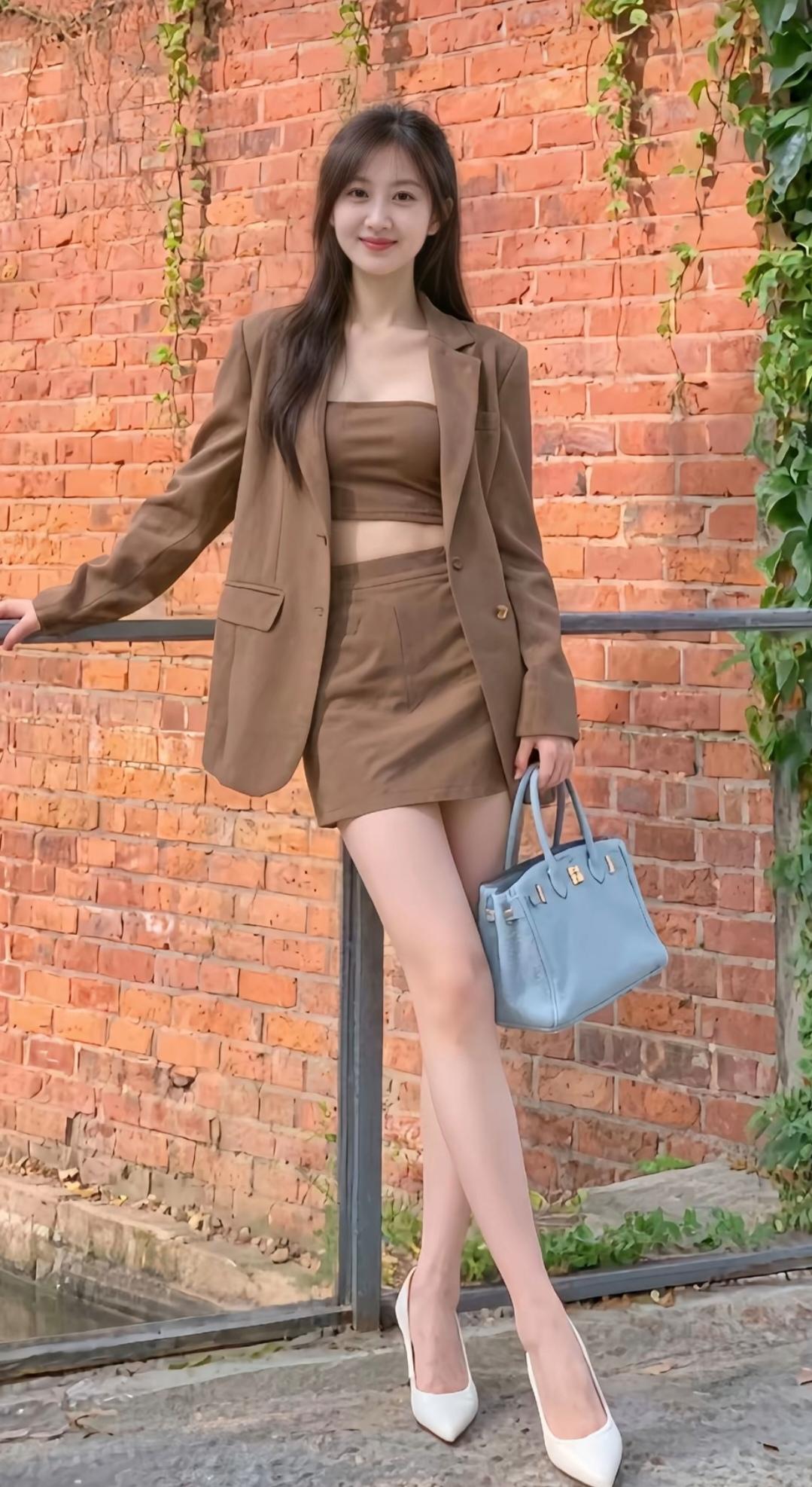 这姑娘穿着皮草外套,站在车前摆姿势。