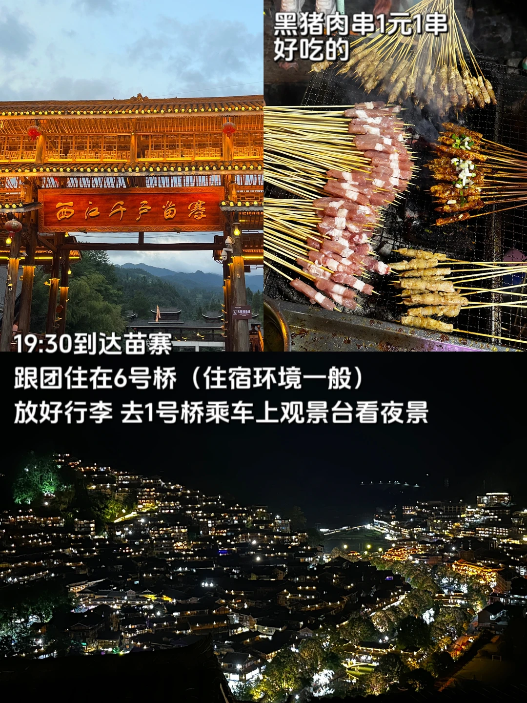 贵阳→团午餐→小七孔→苗寨夜晚→住宿→苗寨白天→团午餐→贵阳→地摊火锅→酒店