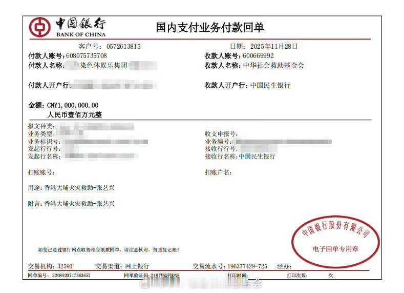 张艺兴又捐款了100w,用于香港火灾救援,慈善爱心方面,张艺兴真的从来不缺席,张艺兴好人一生平安张艺兴捐款驰援香港大埔火灾救援