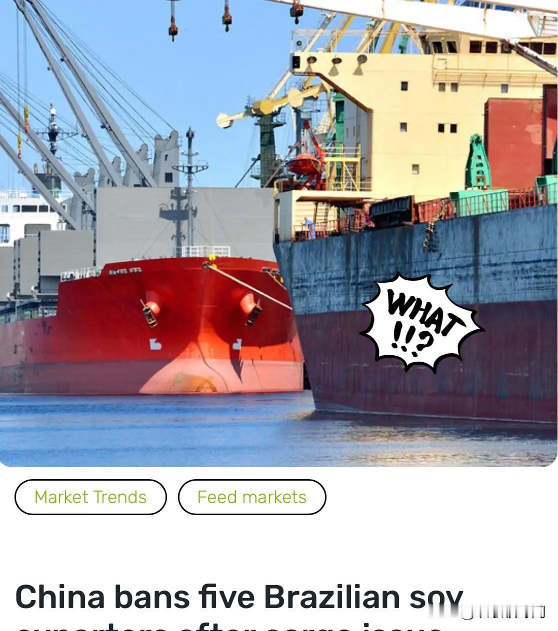 外媒:中国禁止五家巴西大豆出口企业向中国出口大豆! 路透社报道,巴西农业部已接到中国当局通知,五家巴西大豆出口企业被禁止向中国出口大豆。 这事儿本质没那么复杂,核心就俩字:安全!中国检验人员在这五家企业的大豆里,查出了经农药处理的小麦颗粒,完全不符合植物检疫要求。 食品安全从来都是中国的铁律,14亿人的餐桌容不得半点马虎。不管是哪个国家的农产品,想进入中国市场,必须过检验检疫这道硬关。 中国是全球大豆进口的“主力军”,占了全球60%以上的进口量,而巴西大豆长期占中国进口的70%以上,2024年就进口了7300多万吨。 但依赖不代表纵容,合作更得守规矩。这五家企业里不乏嘉吉、路易达孚这样的国际巨头,照样因质量问题被亮红牌。 别听外媒瞎揣测什么“给美国留市场”,纯属捕风捉影。就在11月,中粮还和巴西签了超百亿美元协议,进口近2000万吨农产品。 巴西农业部也看得明白,立刻表态会加强出口检查,推动企业整改,毕竟中国是巴西大豆最关键的市场,谁也不想丢了合作。 中国的大豆供应链早有布局,除了巴西,还从美国、阿根廷补充进口,既保证稳定供应,也给所有出口商提了醒:质量才是通行证。 标准面前一视同仁,合作之下底线分明。这不是贸易限制,而是对生命健康的敬畏,对市场规则的坚守。 各位读者你们怎么看?欢迎在评论区讨论。