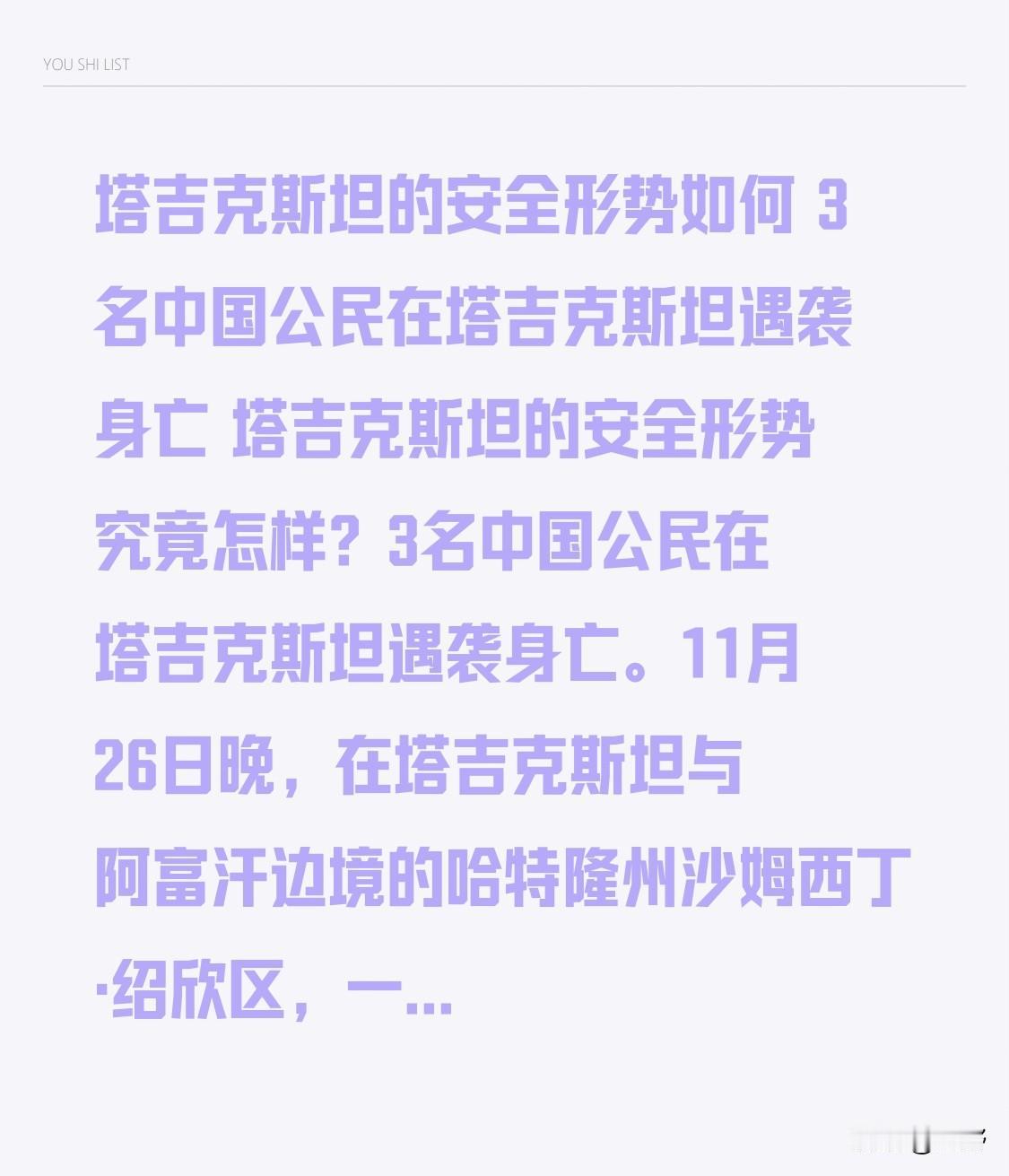 塔吉克斯坦的安全形势如何3名中国公民在塔吉克斯坦遇袭身亡塔吉克斯坦的安全形势