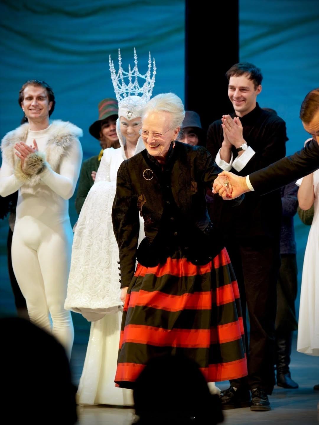 11.27 丹麦玛格丽特二世女王负责服装和舞台设计的芭蕾舞剧《冰雪女王》重映,亲友到场支持。好像去年也是玛格丽特二妹本尼+大孙子尼古拉+跨国老姐妹挪威宋雅