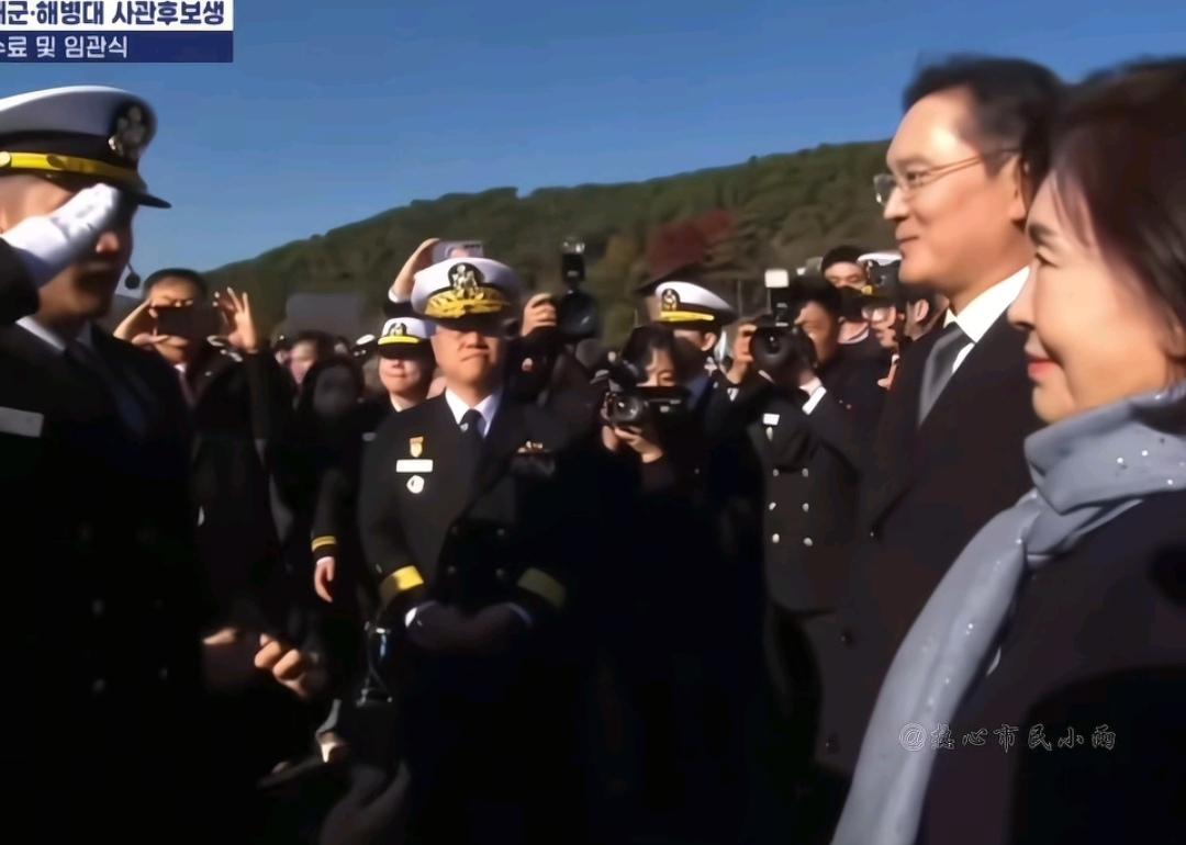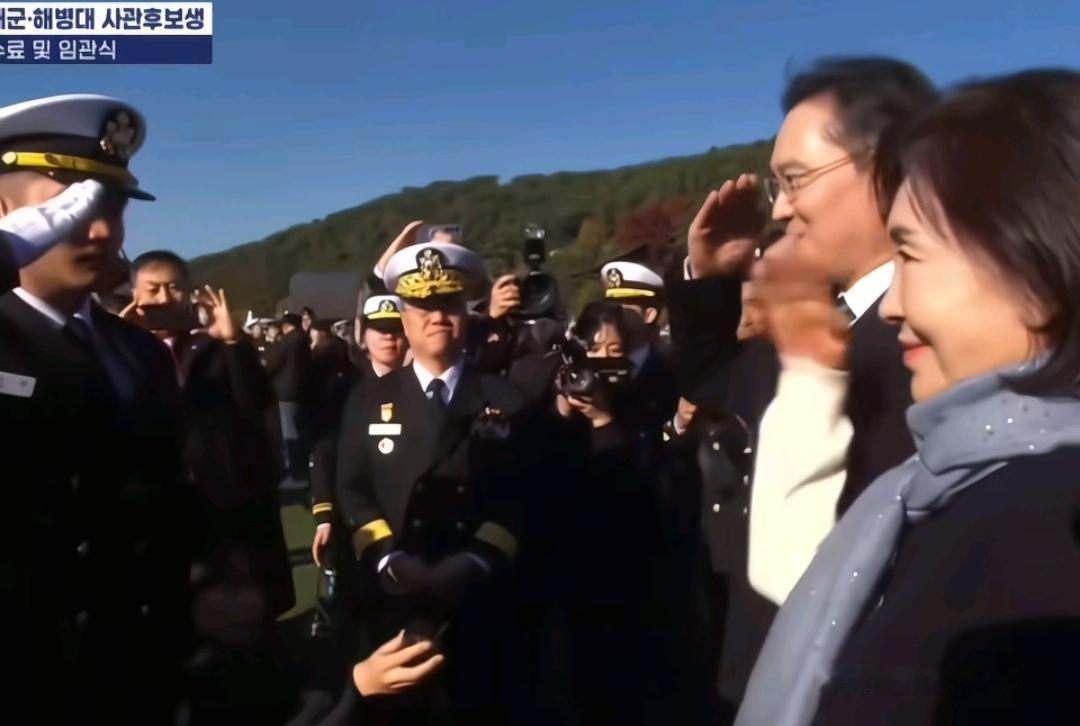 11月28日,李在镕儿子李智昊入伍海军后授职,在这隆重的时刻,奶奶洪罗喜和李在镕到现场见证这一重要时刻。 李智昊回韩国服役后不到两个月,看起来明显瘦了,站姿更端正,在授职环节,李在镕和母亲洪罗喜参与,脸上露出了很欣慰的笑容,随后一家人进行合影留念。 李智昊给父亲和奶奶敬礼,李在镕和洪罗喜回敬了礼,场面看起来很温馨,这也是家庭幸福的模样。 洪罗喜80岁了,但看起来精神状态很好。