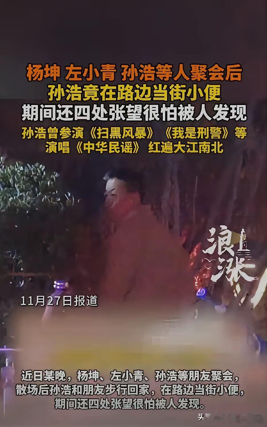 张嘉译坐不住了万万没想到他的陕西老乡孙浩昨天晚上和左小青、杨坤吃了一顿饭就上了热搜[笑哭]不是因为他们在一起聊了什么大制作,也不是他们在一块有什么开心的事儿。而是孙浩在酒局散场后因为憋不住尿找了个马路边解急去了[捂脸],这事儿正好被人拍下来发到了网上。要说人有三急都能理解,可是作为公众人物这么做确实有些不妥,再说散场时可以在饭店的厕所解决一下。大街上几百米的距离基本上都有公厕吧,这样当街小便实在有点不文明。孙浩这次太丢形象了大家觉得孙浩这种行为能被理解吗?