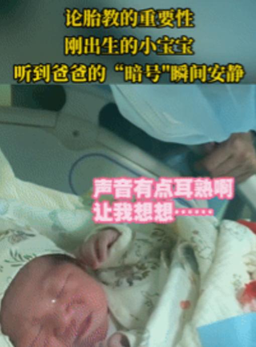 强的可怕!产房里刚落地的婴儿哭得正凶,旁边的爸爸俯下身轻声说了句“宝宝,我是爸爸”,小家伙居然立刻止住哭声,安安静静地靠在妈妈胸口。 这一幕让在场的护士都看呆了,这段视频后来在网上传开,好多人都说这胎教也太神了。 事情发生在山东潍坊的一家医院,这位爸爸从妻子怀孕四个月起就没闲着。 每天早上起床前,晚上睡觉前,他都会趴在妻子肚子上重复这句话,有时候还会把这段话录进轻音乐里循环播放。 本来想就是图个心理安慰,没想到孕晚期有次妻子情绪不好,胎儿半天没动静,他连说三遍暗语后,肚子突然被踢了一下,这才发现孩子是真能听见。 生产那天是半夜发动的,折腾到凌晨五点多孩子才出来。 刚出生的婴儿嗓门大得很,护士怎么哄都没用。 孩子爸爸突然想起平时的胎教,就凑到宝宝耳边说了那句熟悉的话,没想到哭声真的停了,眼睛还慢慢睁开看了他一眼。 当时在场的医生后来回忆,接生这么多年,还是头一回见刚出生的孩子对特定声音有这么快的反应。 胎儿到底能不能记住声音?北京协和医院2022年的报告里说得很清楚,怀孕24周后胎儿的听觉系统就基本长好了,特别是1000到3000赫兹的声音最容易被记住。 爸爸的声音因为频率低,比妈妈的声音更容易穿透子宫壁。 英国《柳叶刀》杂志2021年做过实验,给新生儿放妈妈孕期常听的诗歌,八成以上的宝宝心率都会变慢,明显放松下来。 这位爸爸不是个例。 上海有位准爸爸坚持每天给肚子里的宝宝读《小王子》,孩子出生后听到书里的段落,吮吸奶嘴的节奏都会变。 哈佛大学研究发现,爸爸声音的低频振动能刺激胎儿大脑颞叶发育,对以后学说话有帮助。 中国生育健康杂志去年的调研也显示,爸爸经常参与胎教的家庭,宝宝出生后一周内夜里哭闹的次数能少四成多。 现在的年轻爸爸确实不一样了。 国家统计局的数据摆在那儿,十年前陪产检的爸爸只有12%,现在快一半了。 今年初深圳有个消防员爸爸,每天跟肚子里的孩子讲工作日常,结果宝宝出生后听到警报声反而不哭了,这事儿当时还上了本地新闻。 不过胎教市场现在有点乱。 电商平台上万元的“量子胎教仪”卖得火热,医生却说那些所谓的“声波穿透技术”根本没有科学依据。 北京儿童医院的专家建议,最实在的胎教就是爸爸每天说20分钟话,妈妈保持好心情,再偶尔听听舒缓的音乐。 比起花钱买仪器,父母的声音和陪伴才是孩子最需要的“胎教”。 这件事之所以让人感动,不只是因为那个神奇的止哭瞬间,更因为它让我们看到父爱的另一种模样。 从趴在肚子上轻声细语,到产房里那句熟悉的暗语,这份陪伴其实早就开始了。 或许未来的某一天,当这个孩子问起自己最早的记忆,爸爸可以笑着说,你第一次听见我说话,就知道该安静下来了。