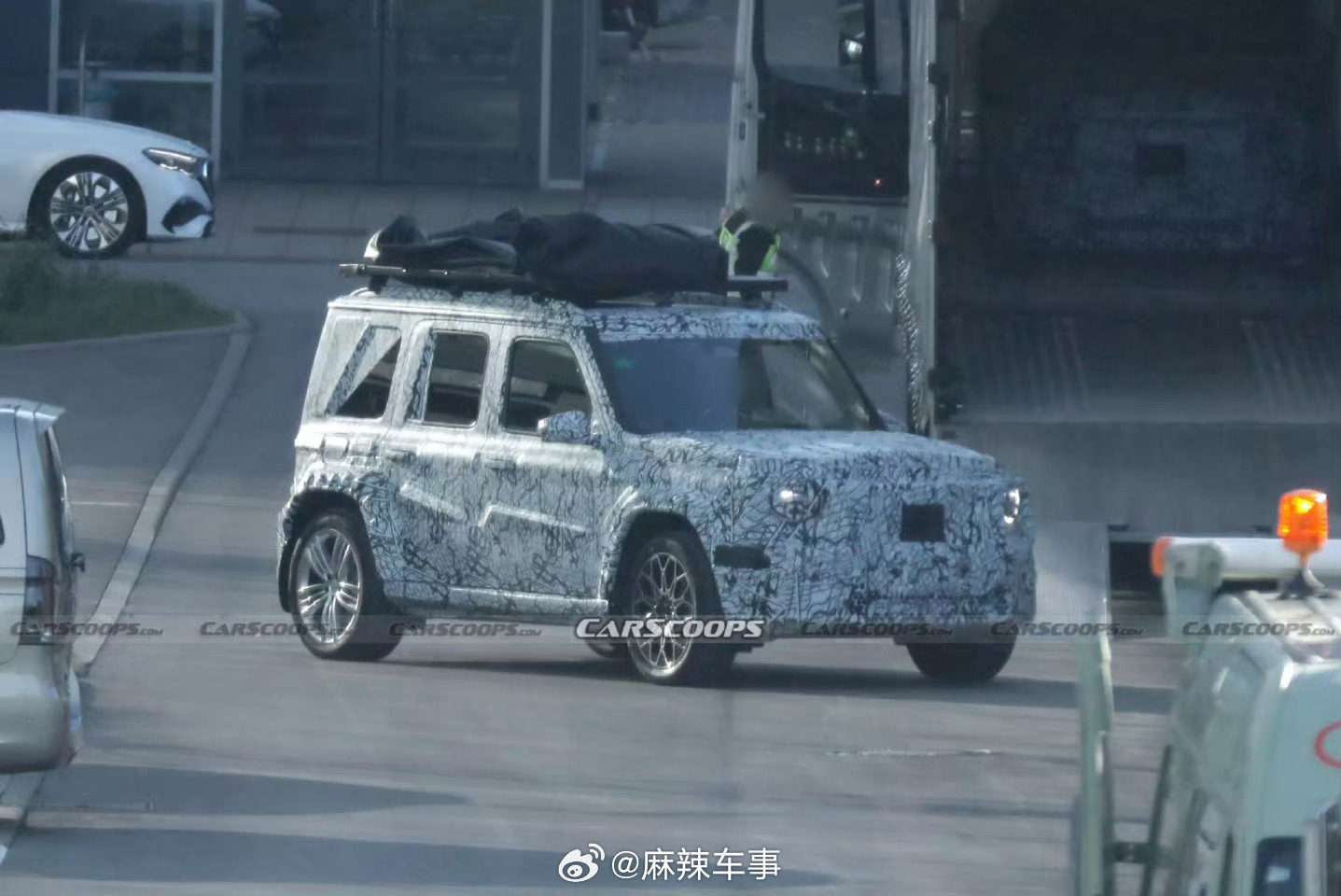 奔驰全新SUV谍照。方盒子造型,大概率是之前说的小G。底盘不高,预计是承载式车身。