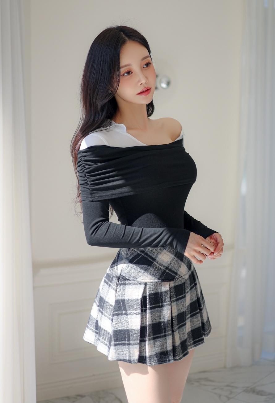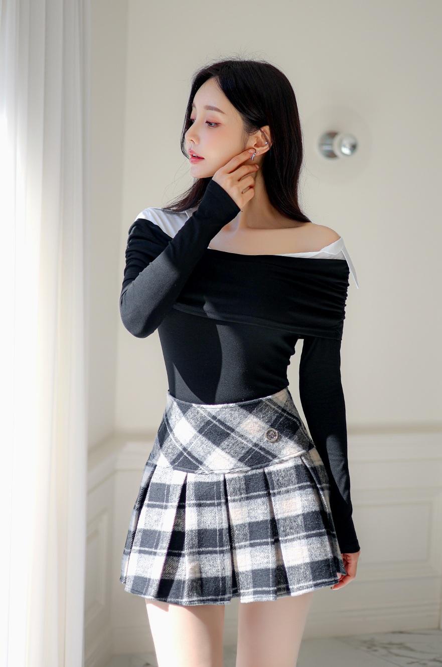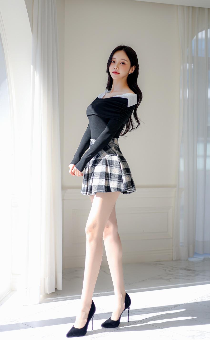 优雅黑白色调,复古格纹短裙,时尚穿搭指南