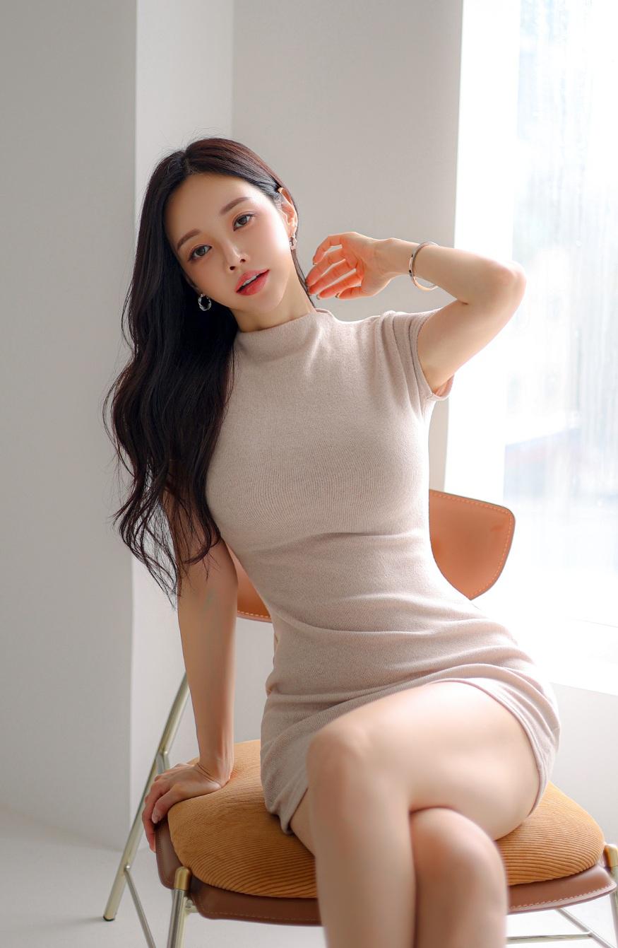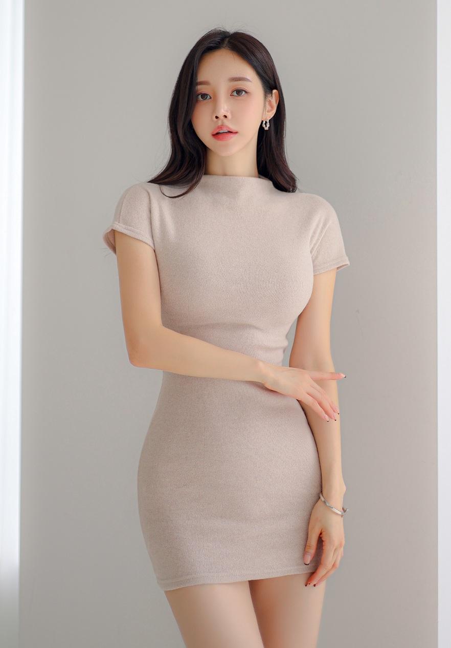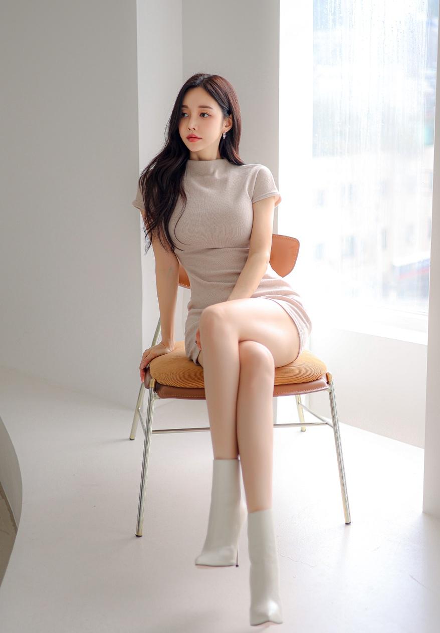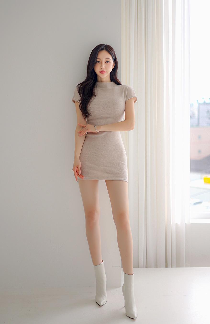 优雅气质穿搭,米色紧身连衣裙搭配高跟靴,尽显时尚魅力
