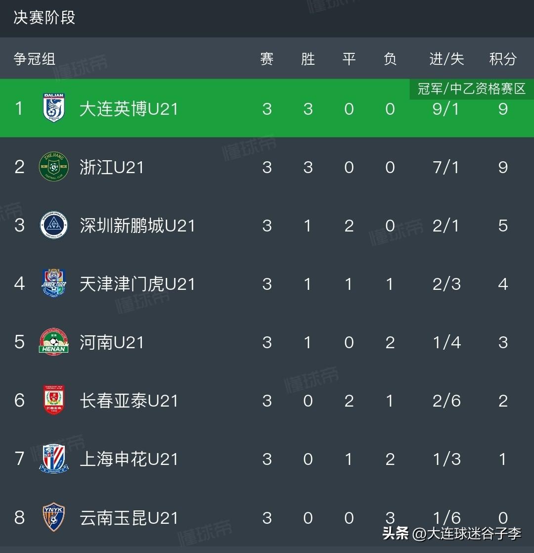 苏超冠军长春亚泰U21打破大连英博U21不失球纪录后,四球败给英博U21! 在今天下午进行的U21联赛决赛阶段第三轮的比赛,苏超冠军长春亚泰U21对阵辽超冠军大连英博U21,大连英博U21从晋级赛到决赛阶段的比赛9轮不失球的纪录在今天下午被亚泰U21打破了,比赛第6分钟,亚泰队李佳成打入一球终结了英博U21的不失球纪录。 虽然大连英博U21在第6分钟就丢球了,但随后连入5球,最终5-1战胜了苏超冠军长春亚泰U21。 苏超的火爆让一部分球迷认为苏超水平很高,可以吊打中超球队,作为遍历过中超、中甲、中乙、中冠、苏超的“全满贯”的前辽足球员阮喆祥是这样评价苏超的,他说:“说白了还是业余联赛,大概能跟中冠或中乙的保级队掰掰手腕,苏超决赛泰州对阵南通的比赛场面,其实挺混乱的,一到上压力较劲的关键时候,大家的发挥就容易受影响,苏超的训练节奏与职业联赛相比仍有差距。” 我想阮喆祥的话也真实反应了苏超的水平,那些好高骛远说苏超可以吊打中超的球迷也是时候该醒醒了。 今天下午的U21联赛,作为辽超冠军的大连英博U21也给苏超冠军长春亚泰U21上了一课,5-1的比分也体现了双方是有四个球的差距的,当然,还得恭喜亚泰U21打破了英博U21的不失球纪录。 12月26日-1月2日,在江苏南通,作为辽超、苏超冠军的大连英博U21和长春亚泰U21应该还会相遇,希望届时双方能给广大球迷奉献出一场精彩的比赛。 U21联赛决赛阶段三轮战罢,大连英博U21依靠净胜球优势排在榜首(图4),U21联赛冠军将和大连涵禹争夺一个晋级明年中乙联赛的名额,加油大连足球! u21足球联赛