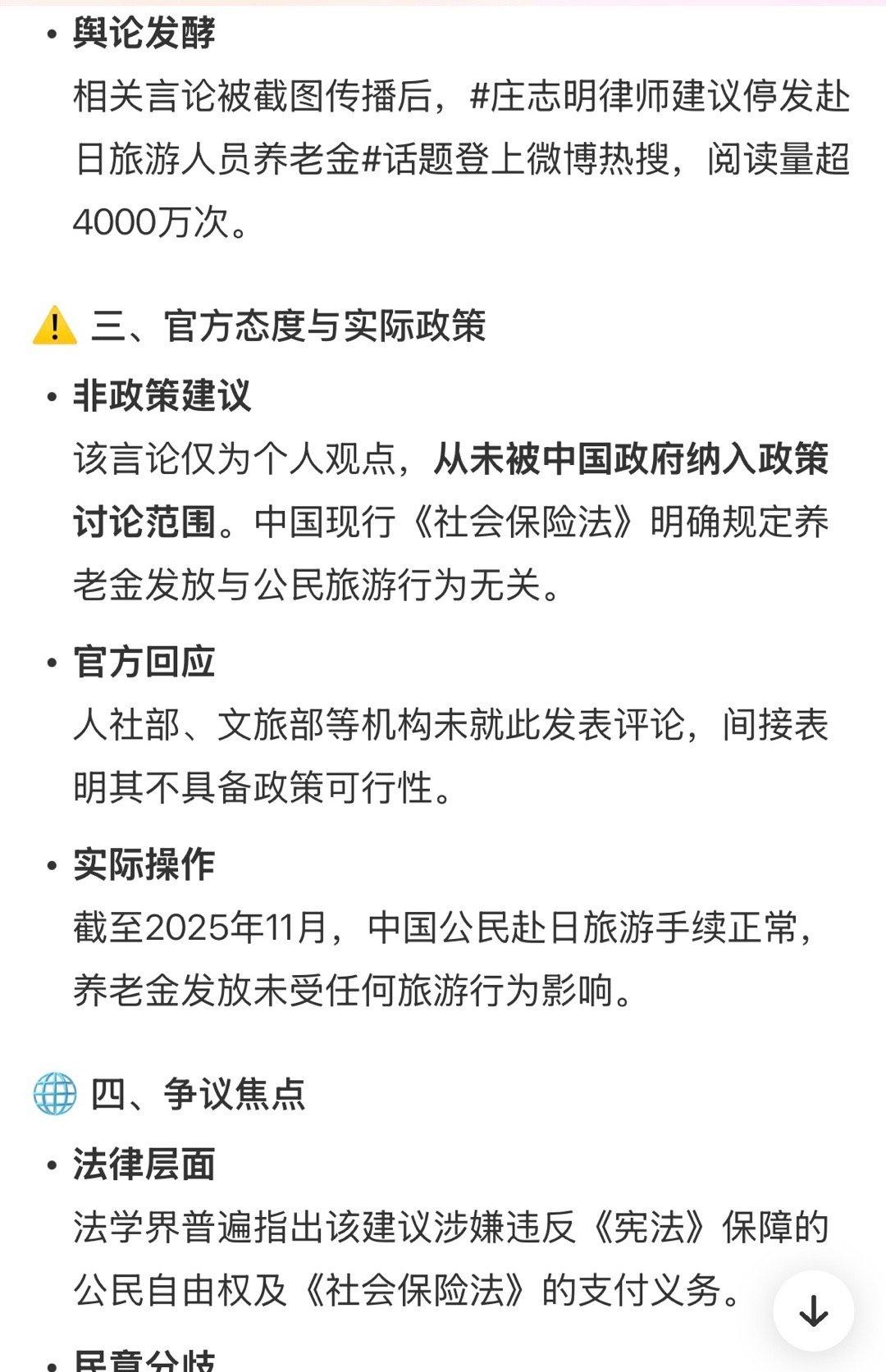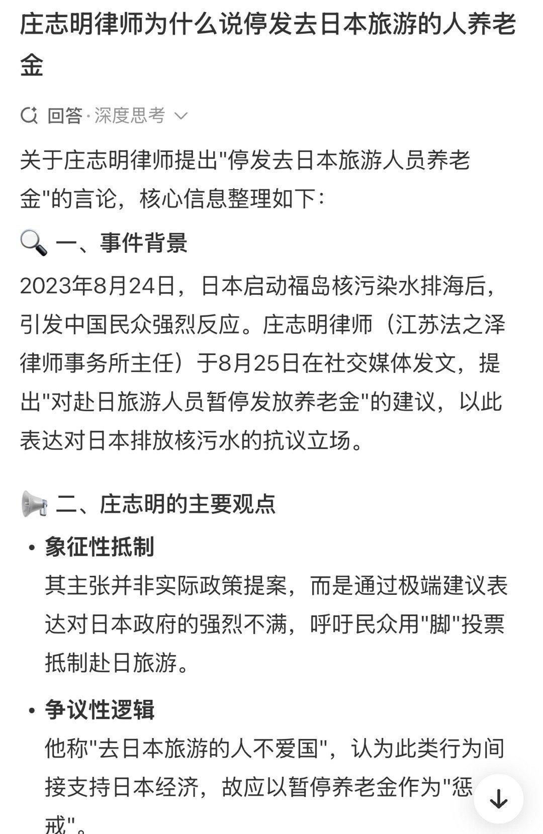 这个律师提出来的停发赴日人员养老金的法律依据是什么?律师讲话应该是讲逻辑、讲证据、讲法律条文的,否则,仅凭自己的情绪上法庭辩护,那谁敢请你去?关于赴日这件事,政府仅仅是提醒,不是限制,也不是禁止,是提醒赴日有风险,尽量不要去,如果你非要去,风险很大,即使这样,也说了,遇到困难及时和驻日使领馆联系。另外,赴日人员各有各的情况,有些事必须去的,如果停发养老金,那不是坑人吗。还有,有些人有养老金,可以扣,有些人没有养老金,难道就不处罚了?这不是也不公平吗?如果国家封闭国境线,禁止一切赴日行程,这个时候,如果还有人擅自赴日,那就不是扣发养老金的事情了,可能就要🈶牢狱之灾了。律师说话,要依法!不能信口开河。