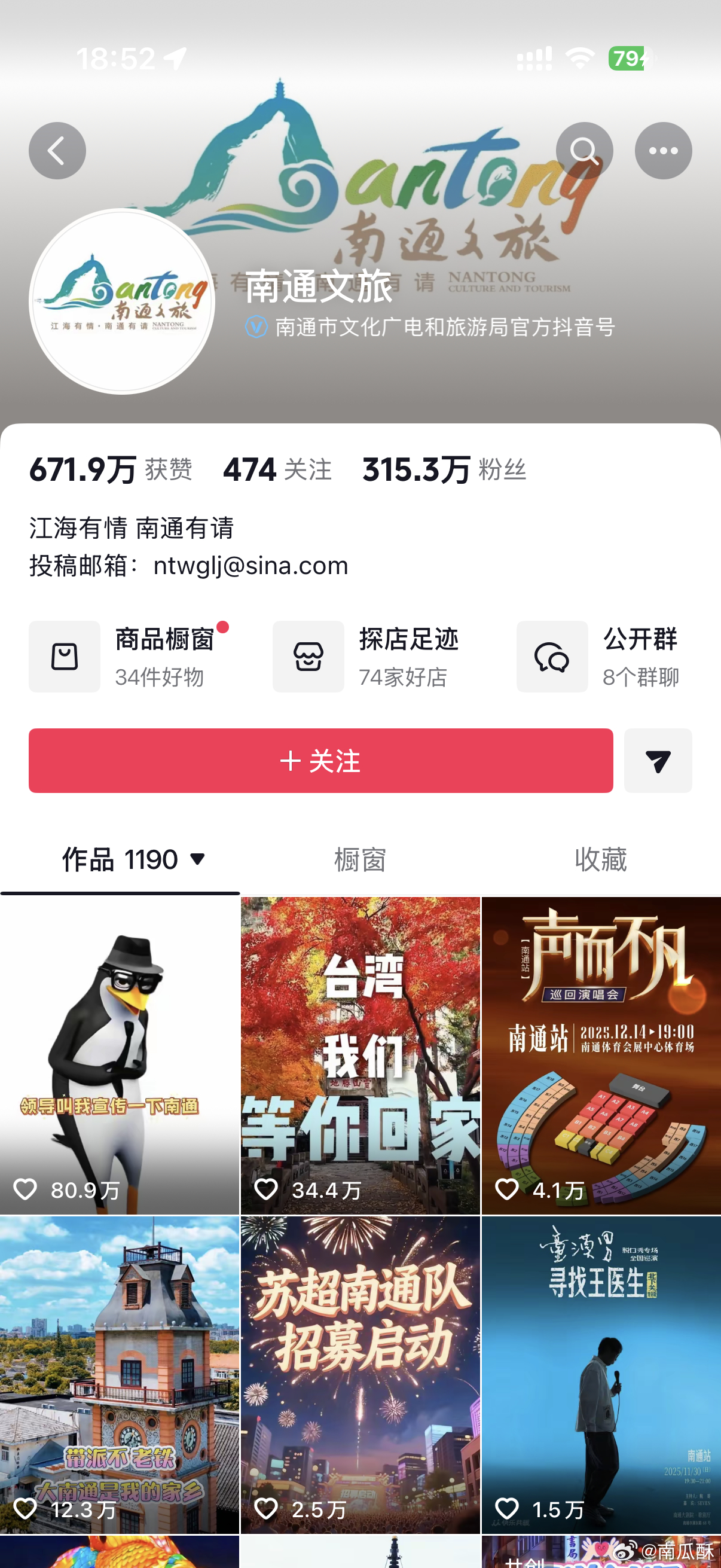 南通文旅粉丝破百万已经300多万粉了,从未见过如此恐怖的涨粉速度。。