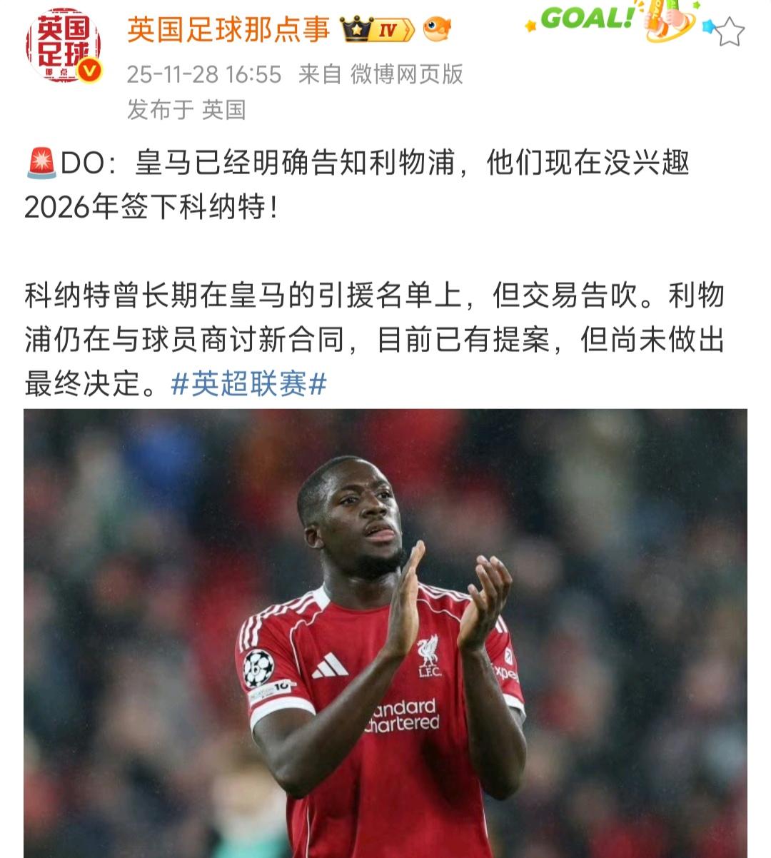 利物浦的防守太差,所以皇马不要科纳特了! 最近利物浦的糟糕表现全世界都看到,尤其是后防线是英超丢球最多。 这样的科纳特免签过来,皇马都觉得亏,干脆不要了!![笑哭]