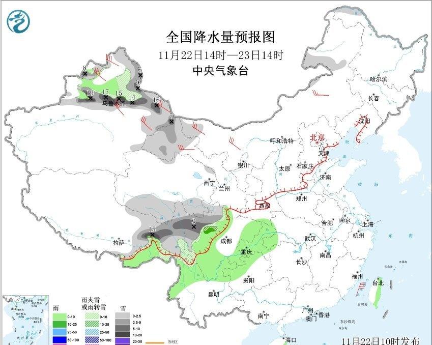 【冷空气正在刷存在感!雨雪上线+大风加持,局地还有风吹雪→】冷空气一股接一股来袭 今天我们迎来了小雪节气。小雪时节不一定有雪,但此时的天气好像总在提醒我们,冬天的雪正在酝酿中。所谓“连朝浓雾如铺絮,已识严冬酿雪心”,那就怀着等待下雪的心情期盼着吧。 第一个告诉你下雪的人一定很喜欢你。 今天新疆的天气刚好撞上小雪节气,直接把 “应景” 俩字焊在天气里了。从今天上午的卫星云图上能看见,咱新疆上空裹着厚厚的云层,冷空气正搁这儿“搞事情”呢,不少地区都将迎来雨雪。 今天夜间到明天,伊犁河谷东部山区、塔城地区、乌鲁木齐市、昌吉州山区、哈密市北部山区等地局地累计降水量大。除了降水,大风也没闲着,北疆、东疆风口风力较大,局地伴有风吹雪。 提醒小伙伴们,雪天路滑是真的,不管是开车还是走路都慢点儿稳点儿,尤其是经过积雪结冰的路段,别着急赶时间,安全可比啥都重要。
