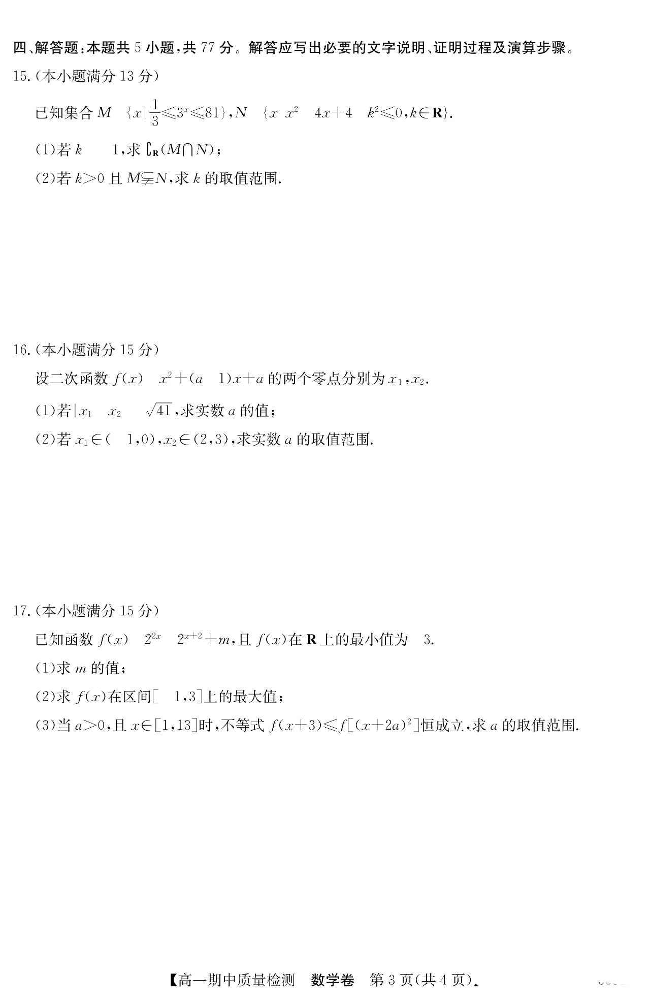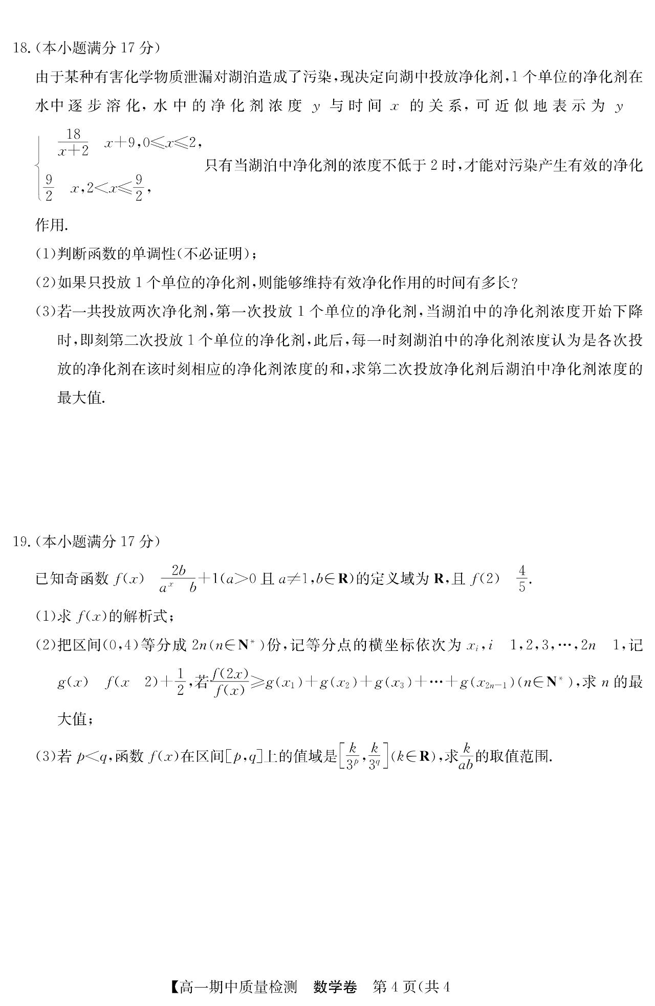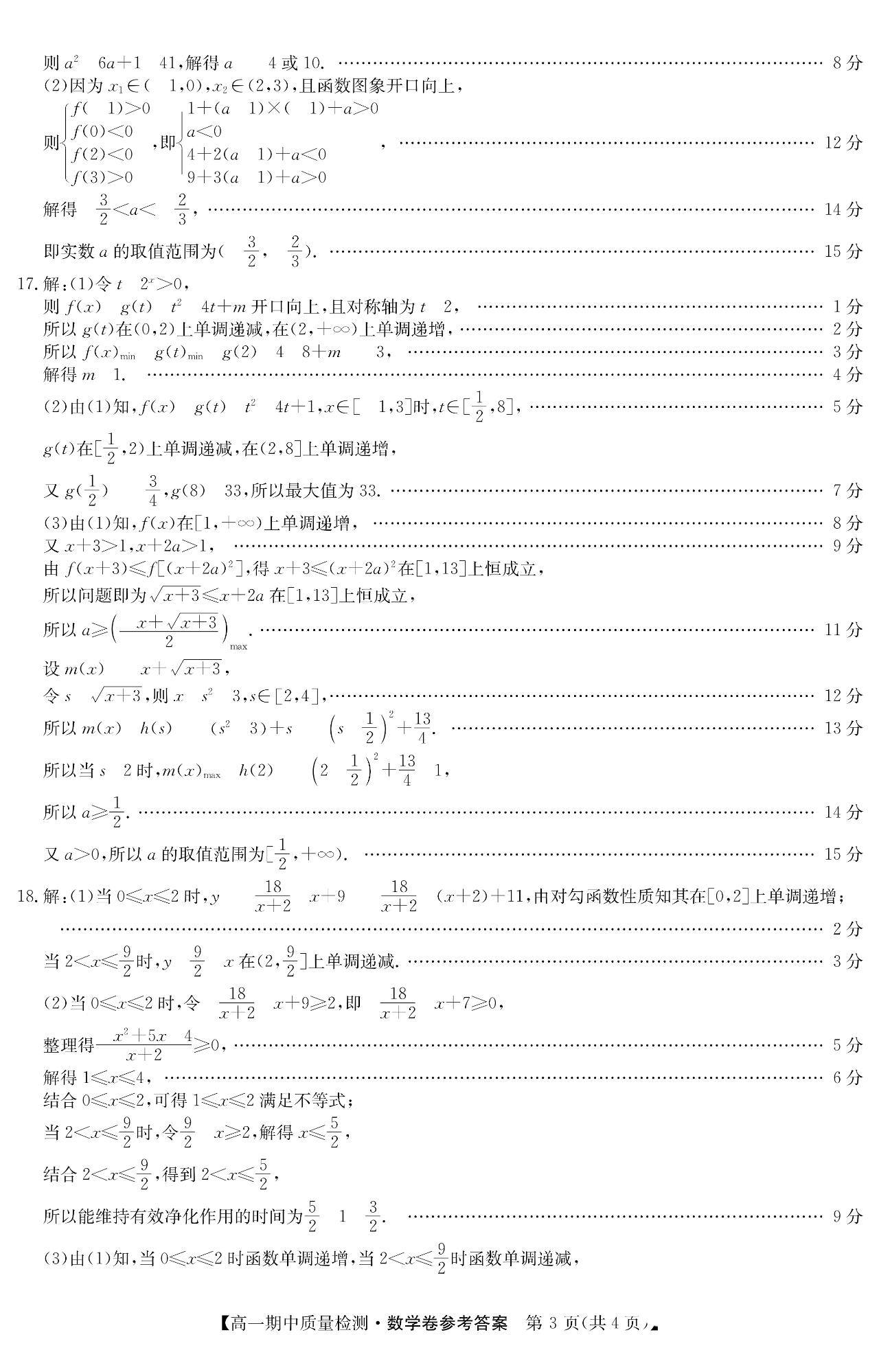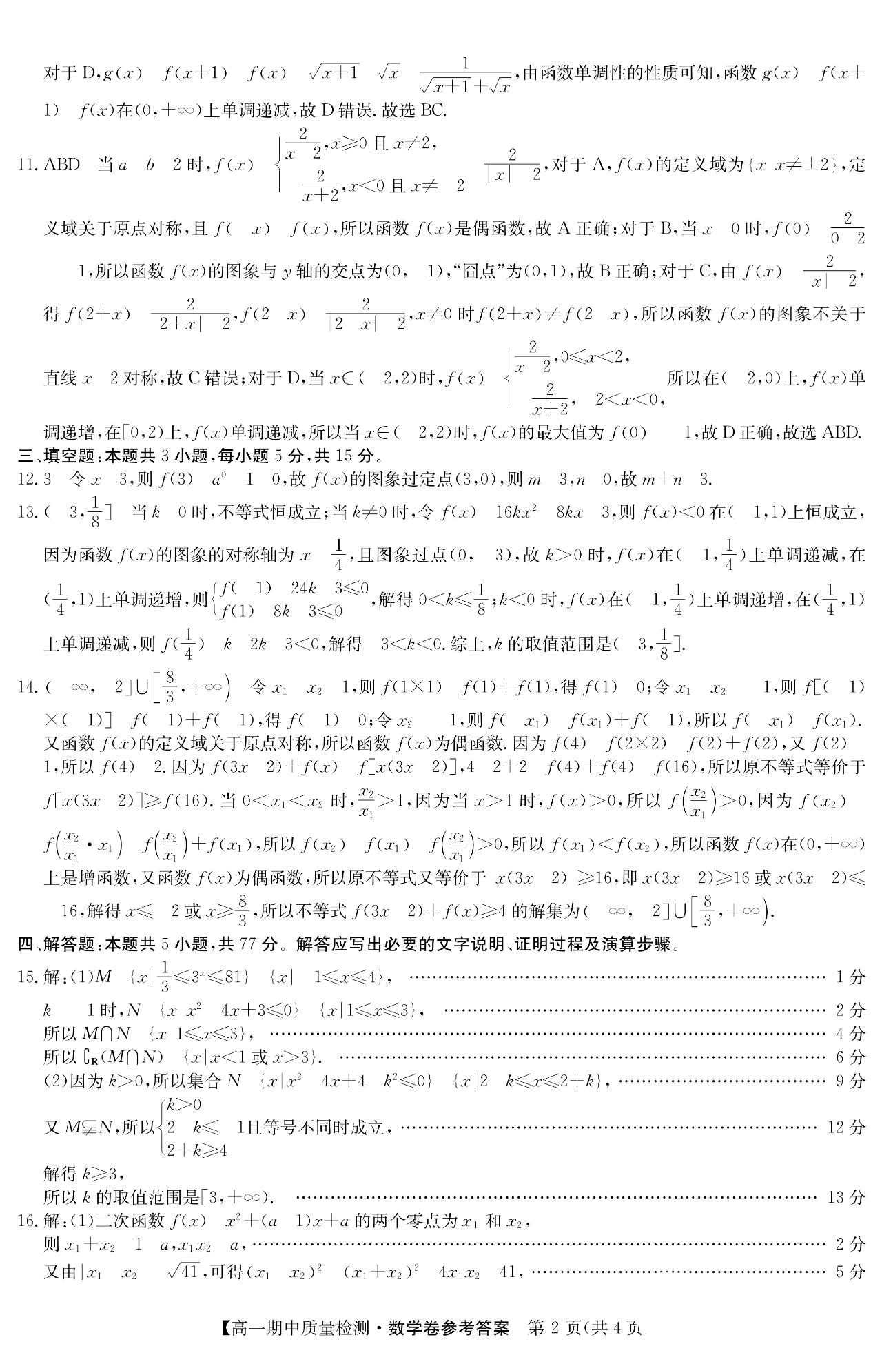 安徽省华师2025年联盟高一、高二数学上 期中 大题及解答。