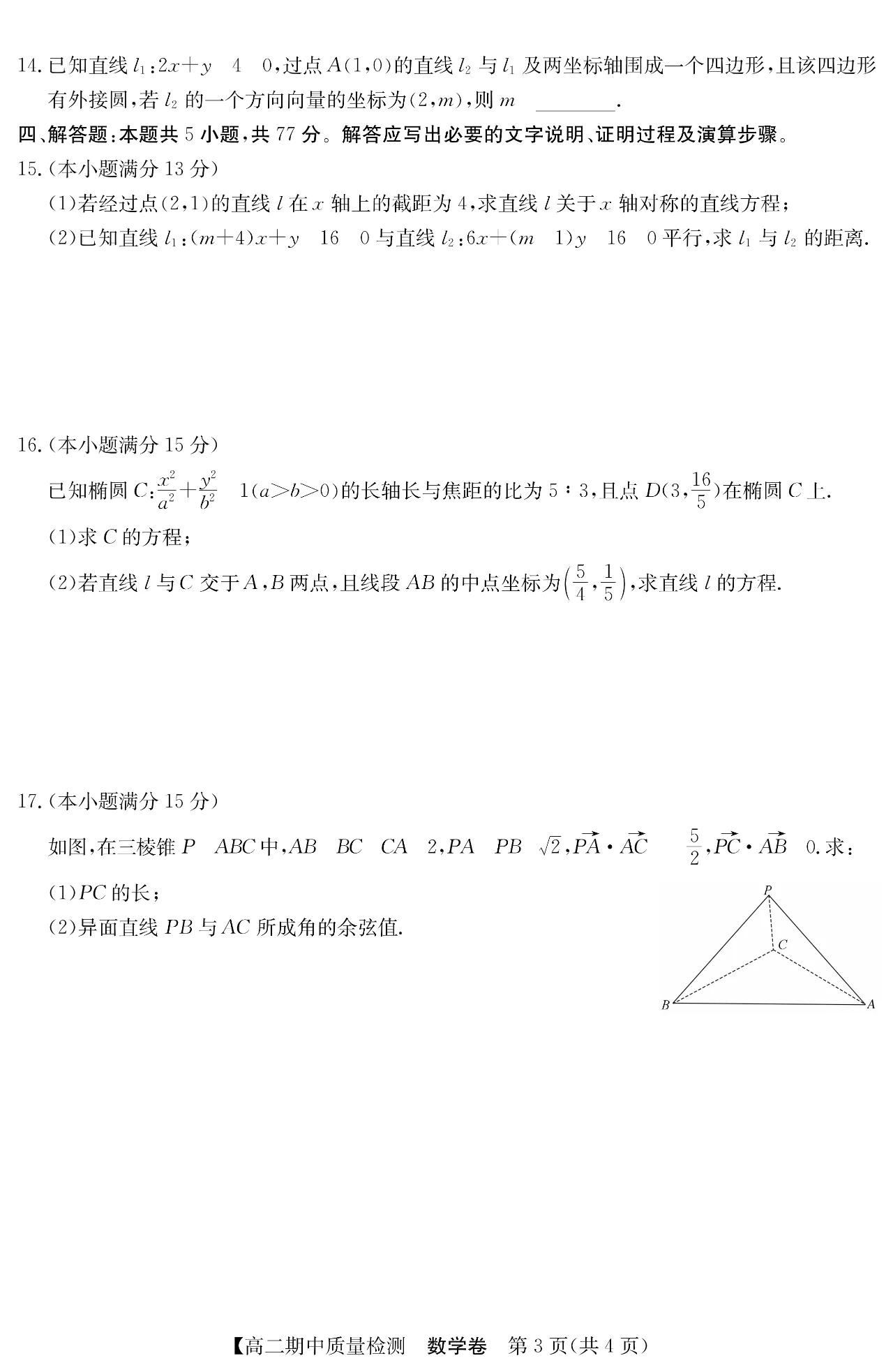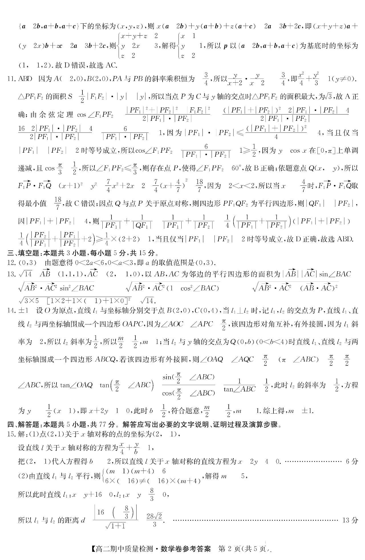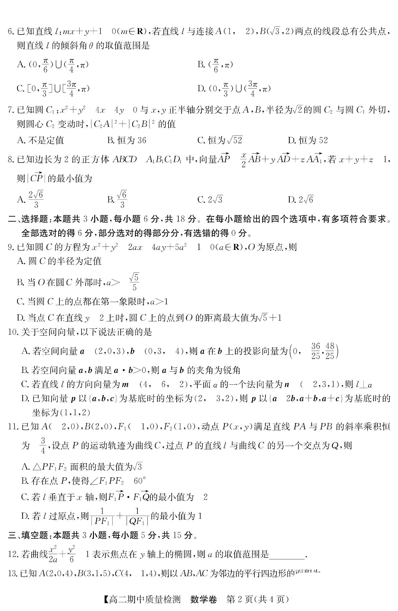 人教A版A、B、C卷和北师大版安徽省宿州高二上数学期中考试详细(单选题多选题填空