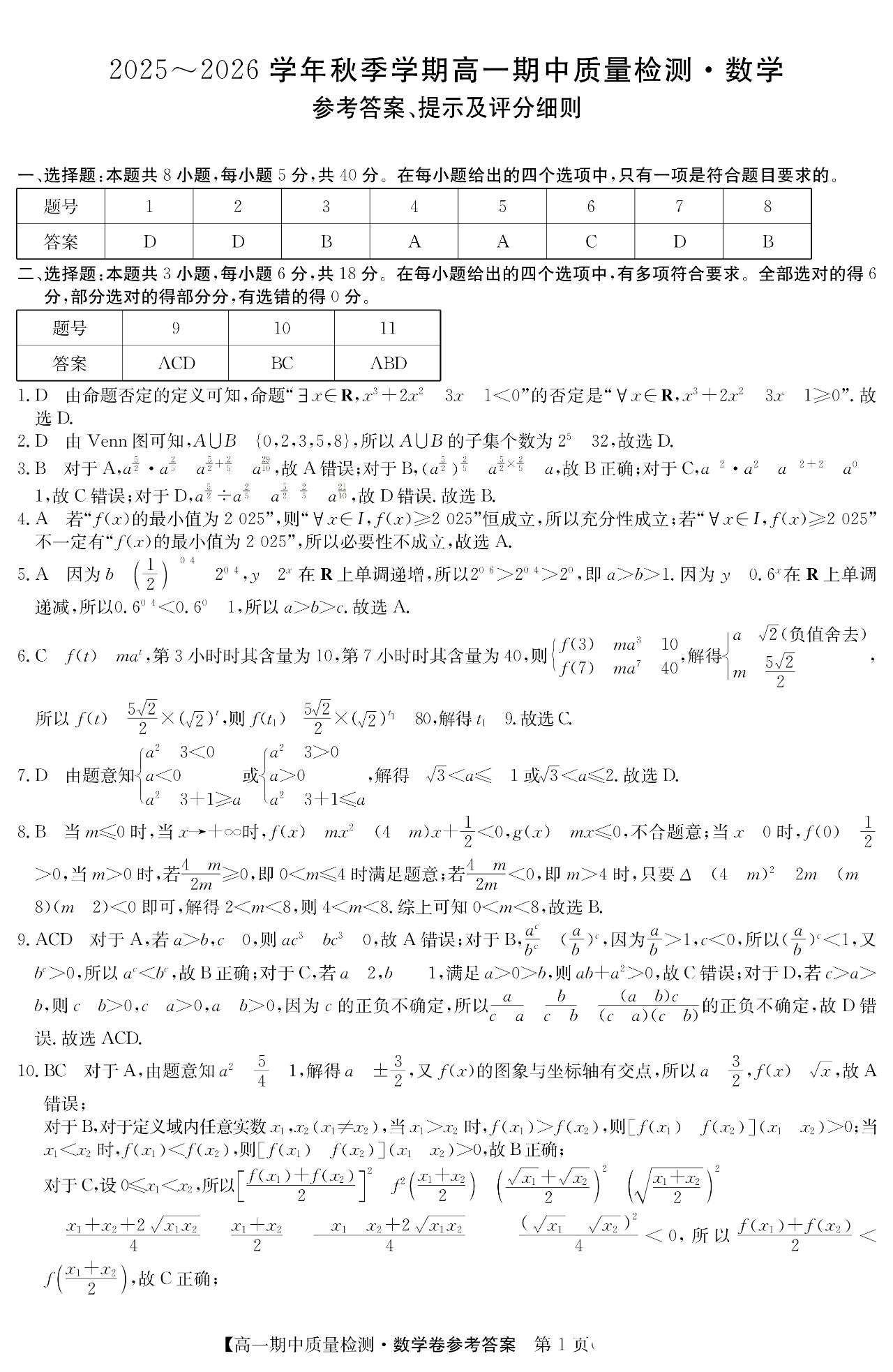 安徽省某联盟2025年高一高二 数学上 期中考试试题及其详细解答。