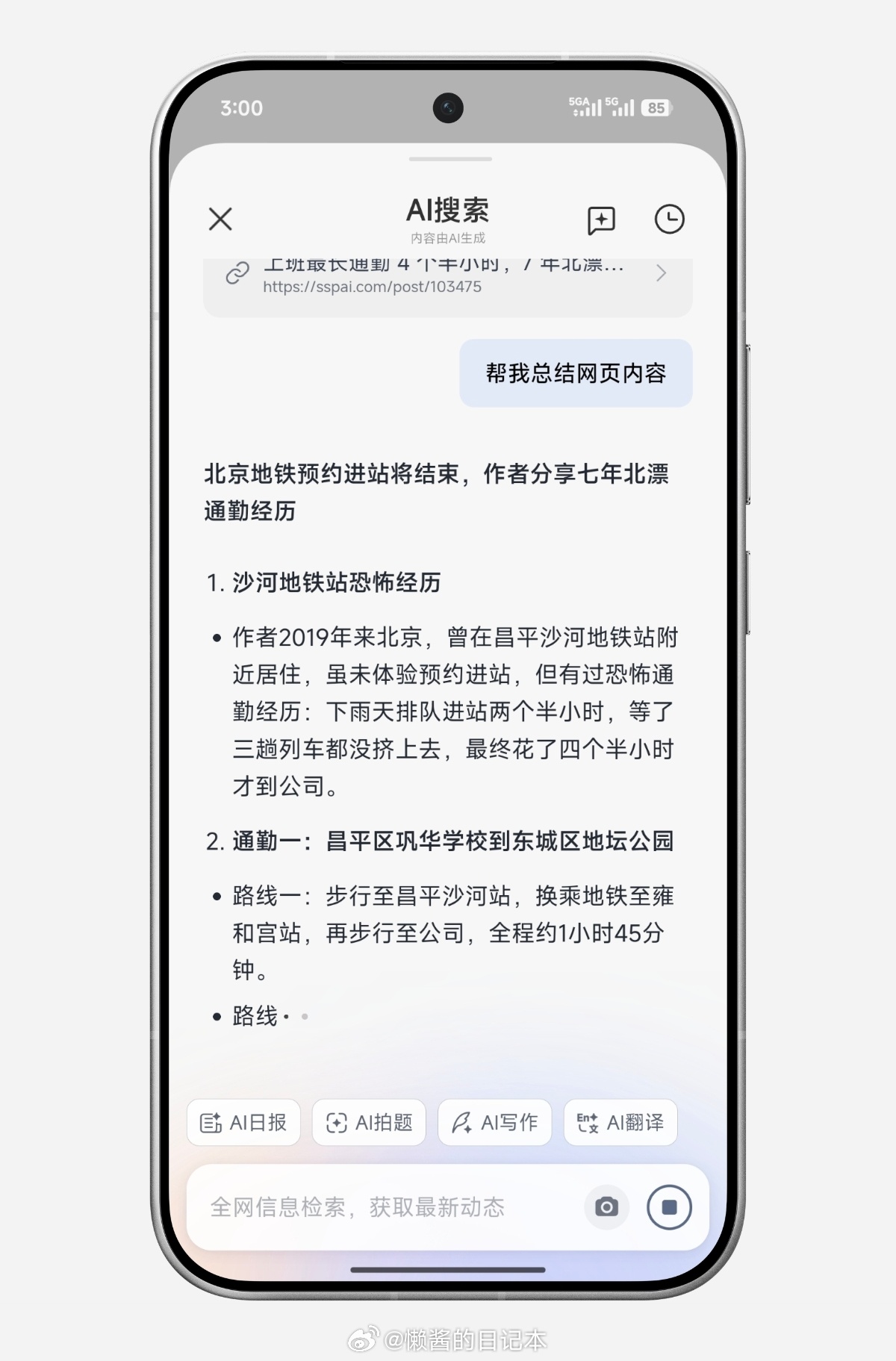 小米澎湃OS3 小米“浏览器”新增支持AI总结功能,支持使用AI总结网页内容。