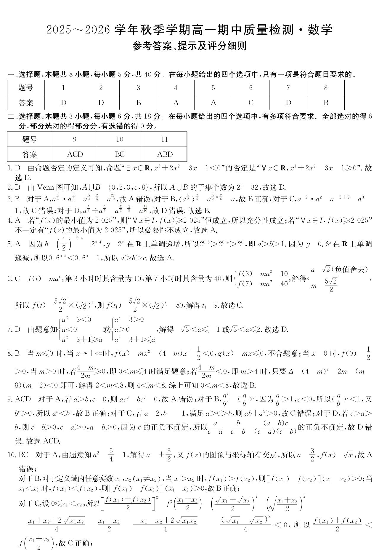 安徽省某联盟2025年高一高二 数学上 期中考试试题及其详细解答。