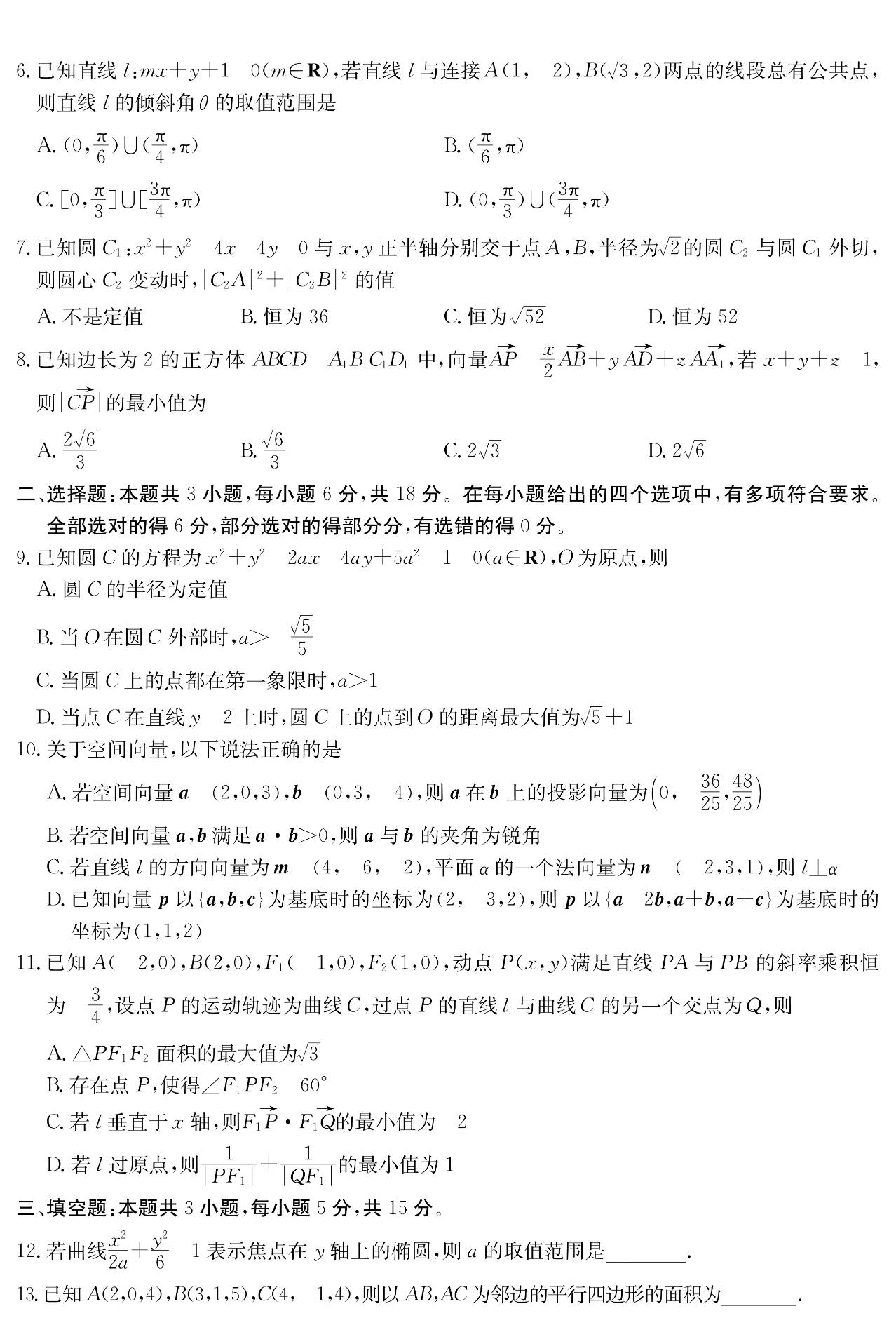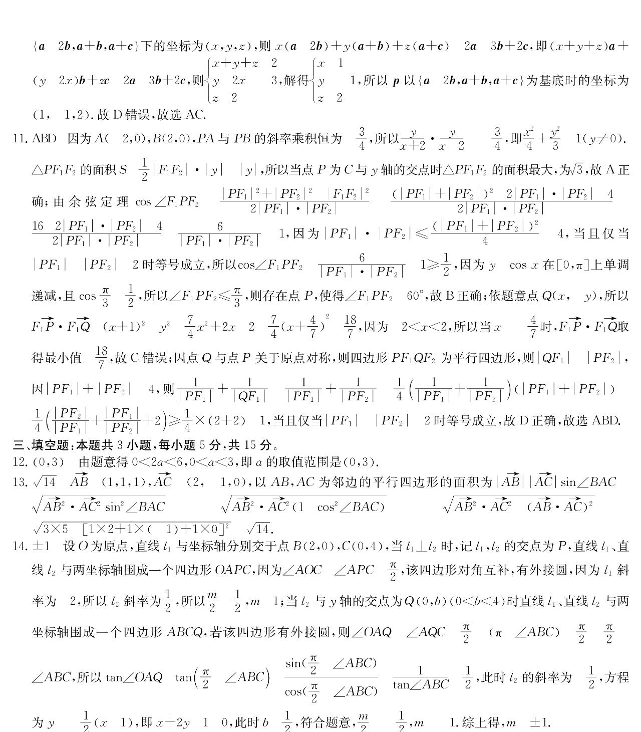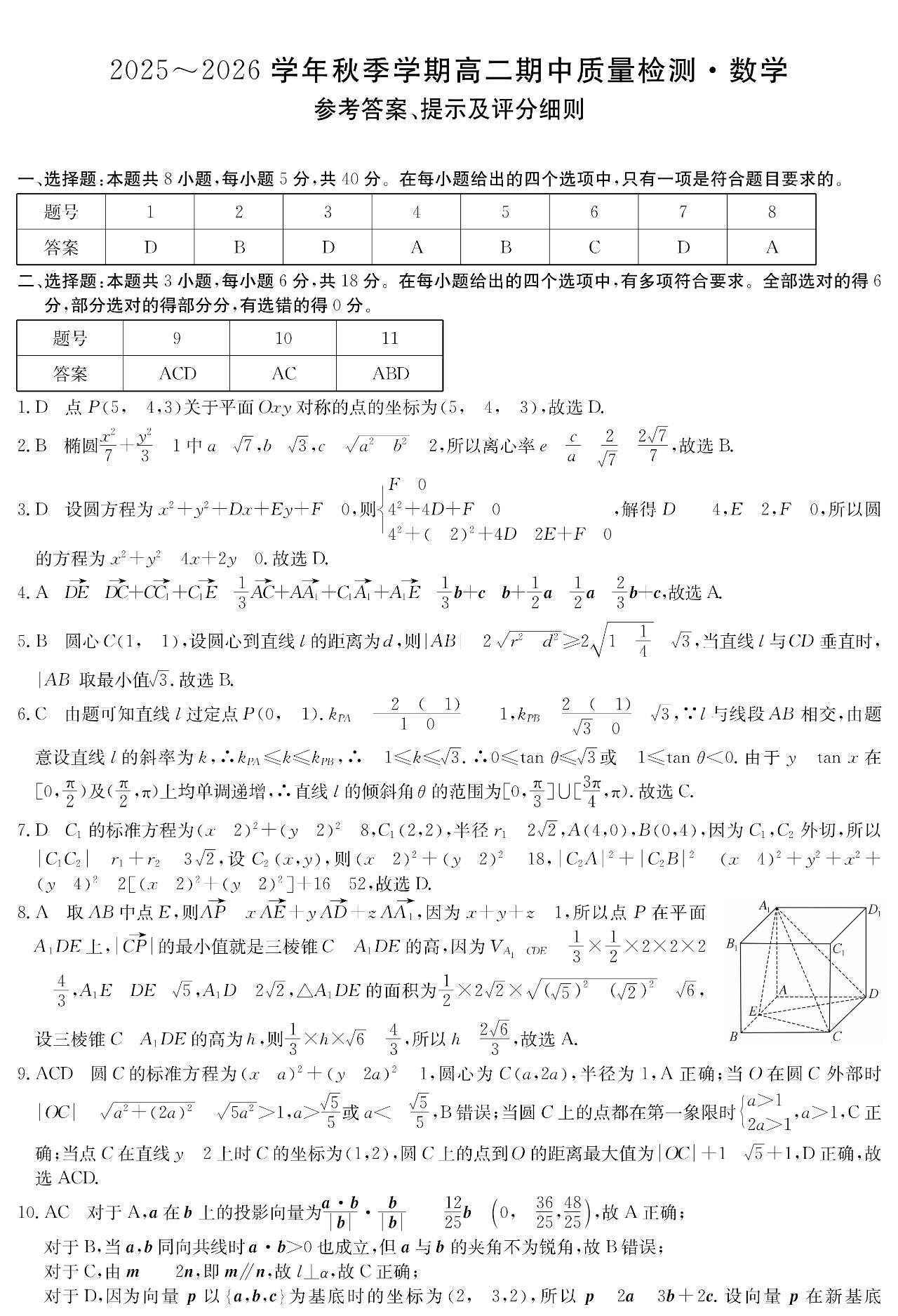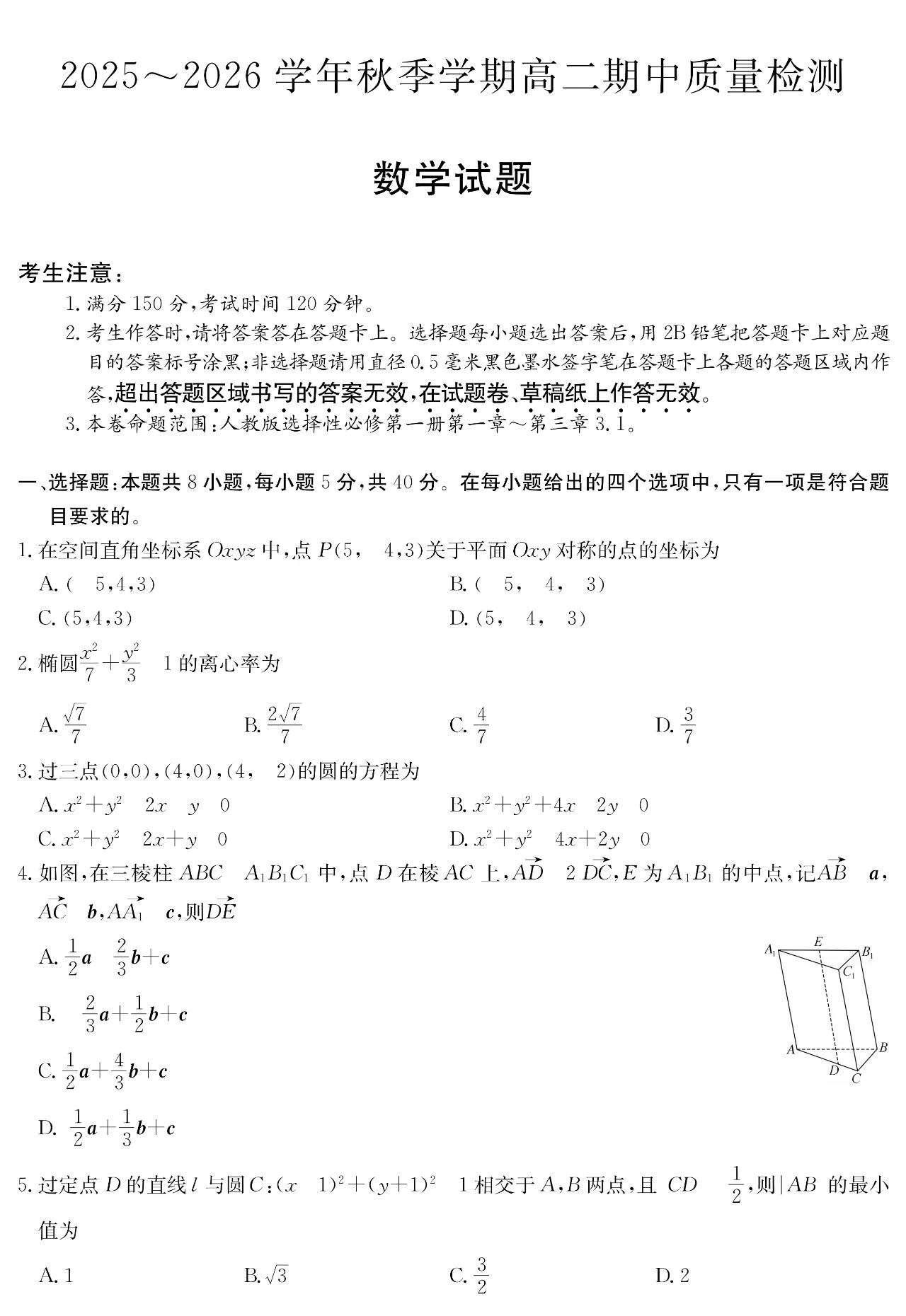 人教A版A、B、C卷和北师大版安徽省宿州高二上数学期中考试详细(单选题多选题填空
