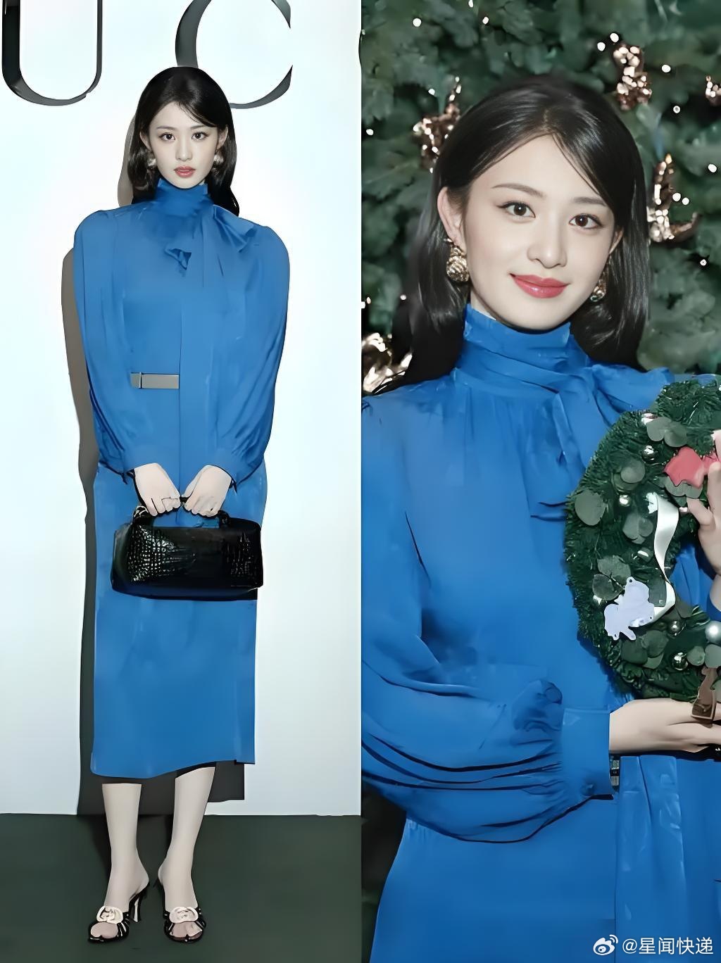 王楚然172cm的身高以及那立体的骨相,让她能够轻松地驾驭这款高难度的礼服。她穿上这条宝蓝色提花纱裙后,冷艳贵气中又透着摩登感。王楚然