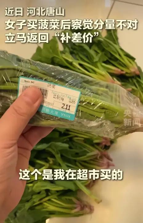 善良会传染!唐山女子一个举动,让全城人排队补钱。 邵辰辰弯腰调秤的那一刻,校准的不仅是计量单位,更是人与人之间诚信的刻度。 邵辰辰没想到,一次普通的买菜经历竟让她火到央视。11月22日,她在唐山玉田县金玉市场大集上,从一位70多岁大爷那里花两块钱买了一斤菠菜。 回家一称,她发现足足有两斤重。原来大爷误将公斤秤当作市斤秤,半卖半送。 得回去补钱!邵辰辰立即骑车返回市场。寒风中,老人那双皲裂的手和佝偻的身影让她心疼。找到大爷后,她不仅补上差价,还蹲在摊前帮老人调准了秤。 不用不用,一把菜而已。大爷朴实的话语让人动容。更温暖的是,现场其他顾客知情后,竟纷纷排起队补钱,一场个人善举演变成全城的爱心接力。 全网刷屏的善意,点燃城市温度。这则短视频发布后,瞬间刷爆网络。央视新闻,河北新闻网等媒体纷纷报道,网友们称邵辰辰为调秤女士。 市井有光,照见人性。一位网友的评论道出了无数人的心声。邵辰辰的举动之所以引发强烈共鸣,是因为在她身上,我们看到了久违的诚信本色。 更可贵的是,这场善意并未止步。11月27日,带着网友们的关心,邵辰辰再次来到大爷的摊位。她象征性地装了一袋菠菜,却悄悄扫码支付了50元。 事件背后,还有一个容易被忽视的落脚点,每个普通人都可以成为城市温度的发光体。卖菜大爷的秤错了,但他的心没有错。当顾客们排队补钱时,他连连推辞,甚至想送菜表达感谢。这位普通劳动者的质朴,同样是照亮城市的一束光。正能量是每个人都具备的天性,关键就在那一念之间。邵辰辰的选择,唤醒了人们心中最纯粹的善意。 唐山是一座有爱的城市,正如邵辰辰所言,谁家有事搭把手,邻里之间互相温暖,都是生活中最常见的事。这把菠菜承载的善意正在持续传递。 如今,邵辰辰已回归平凡生活。但她的故事已化作一颗善意的种子,在全城生根发芽。以后再遇到这种事,我还会这么做。她简单的话语,正是对善良最朴实的诠释。
