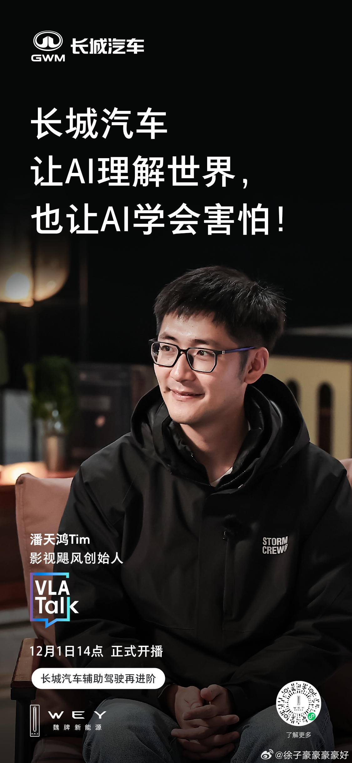 好家伙!影视飓风Tim这次不聊相机,和我肖姐“面基”了!一个是科技大神,一个是幕后技术大佬。俩人一见面,聊的不是参数,而是长城全新的VLA技术。据说Tim上手体验后,直接给整不会了,表现那叫一个亮眼!绝对是全网首秀。具体有多牛?12月1日下午2点,锁定VLA Talk,看技术大咖和顶流UP主怎么把黑科技聊明白!