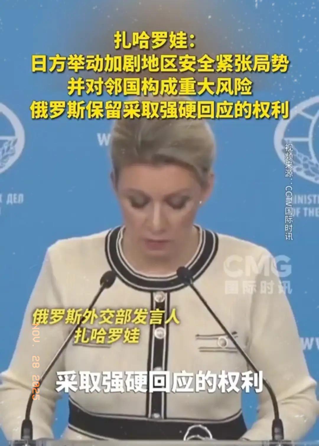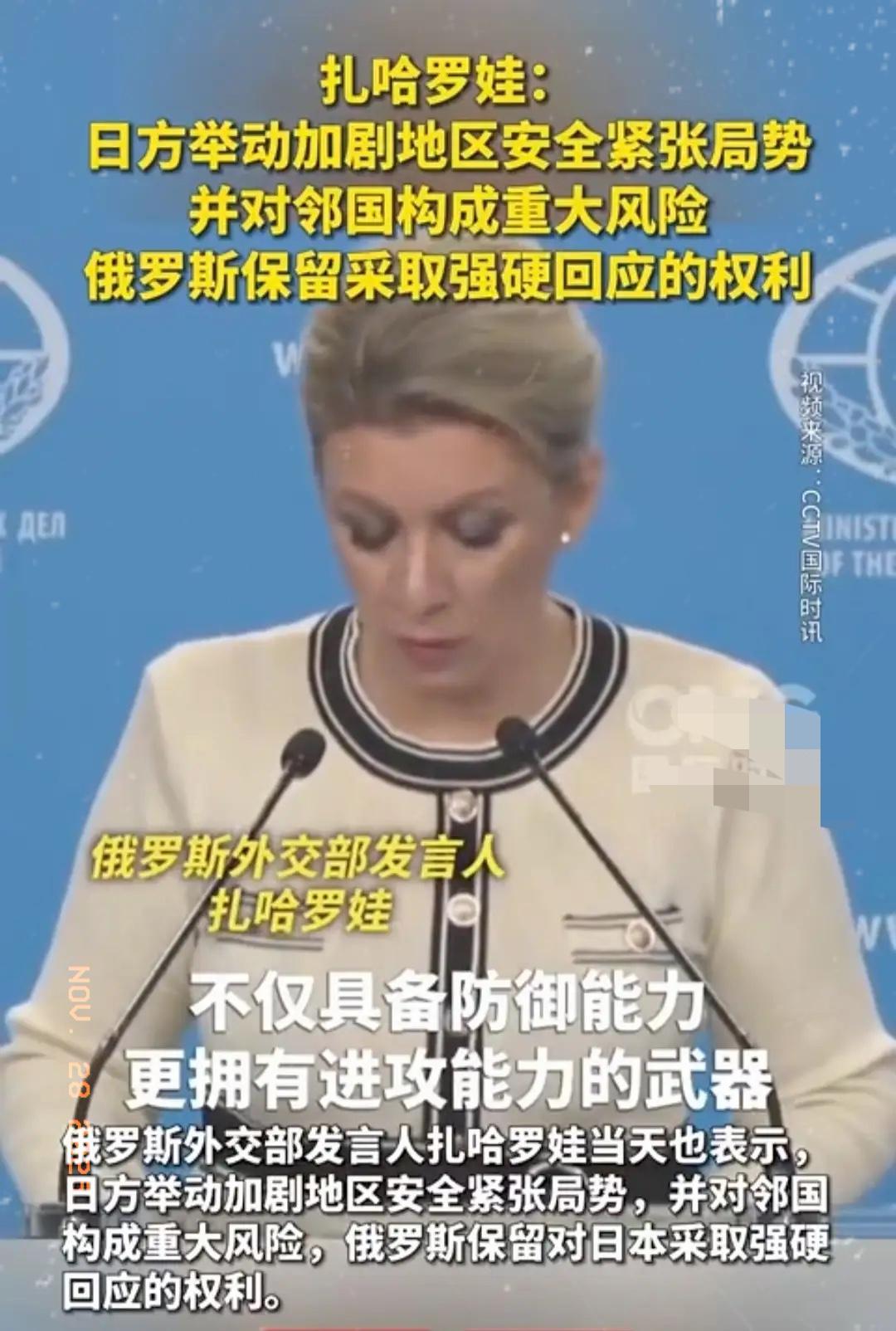 中国若有事, 就是俄罗斯有事! 扎哈罗娃一句话,给日本敲死警钟!! 现在日本是越走越疯,一步步挑动地区局势,不光惹得中国态度强硬,也成功把俄罗斯惹毛了! 扎哈罗娃明明白白警告,日方的举动正在加剧地区安全紧张,给邻国带来大风险! 俄罗斯绝不会坐视不管,保留采取强硬回应的权利! 这话里的潜台词再清楚不过,要是日本敢对中国动歪心思、搞侵略,俄罗斯绝对会出手! 咱们解放军在台海及周边常态化战备巡航,死死盯着西南方向海空态势,用实际行动回怼日本的挑衅; 而俄罗斯选择在南千岛群岛亮剑,这个日俄争议领土此刻成了最佳战略支点! 日本别以为抱着别人的大腿就能为所欲为,中俄的默契和强硬,就是给它划下的红线,越界必遭反制! 如今的日本,似乎已经完全沉浸在一种战略狂热之中。它不仅仅满足于在口头上的强硬,更是在实际行动上步步紧逼。 其最新版的《防卫白皮书》公然将中国定位为“前所未有的最大战略挑战”,并计划在未来几年内将军费提升至GDP的2%,彻底突破和平宪法的束缚。 这种军国主义幽灵的复苏,让整个地区都嗅到了危险的味道。日本积极参与美国主导的“印太战略”,与“四方安全对话”和“奥库斯”联盟勾连日益紧密,试图构建一个包围圈。 这些动作,在它看来或许是抱紧大腿、实现“国家正常化”的捷径,但在邻国眼中,这就是赤裸裸的挑衅和威胁。 面对日本这番操作,俄罗斯的反应那叫一个快准狠。扎哈罗娃的警告绝非空洞的外交辞令,而是与实实在在的军事行动紧密相连。 就在日本对南千岛群岛(日本称北方四岛)念念不忘之际,俄罗斯选择在这里亮剑,将这个争议领土变成了牵制日本的最佳战略支点。 俄军不仅在南千岛群岛建立了新的军事基地,还部署了包括“堡垒”岸基反舰导弹系统和“舞会”导弹系统在内的先进武器,举行了数次大规模的军事演习。 这一系列组合拳,等于是在日本的北大门安插了一颗钉子,时刻提醒着东京,任何对中国的冒险行为,都将导致自己腹背受敌,陷入两线作战的噩梦。 中俄之间的这种协同,已经超越了简单的利益交换,上升到了应对共同战略威胁的高度。 当解放军的战机和战舰在台海及周边海域常态化巡航,以强大的实力压制“台独”分裂势力和外部干涉势力时,俄罗斯则在北方向日本施加了巨大的军事压力。 这形成了一种奇妙的战略联动:中国的行动稳住了东南方向的主线,而俄罗斯则在侧翼为日本上了一道枷锁。这种默契并非临时起意,而是源于两国对美国及其盟友全球遏制战略的共同警惕。 从联合空中战略巡航到海上联合演习,再到能源与经济的深度捆绑,中俄正在构建一个坚不可摧的战略缓冲带,而日本现在正一头撞向这个缓冲带的最前沿。 日本似乎打错了算盘,它天真地以为只要紧紧抱住美国的大腿,就可以在地区内为所欲为,甚至重温昔日的帝国旧梦。但它忽略了几个关键问题。 首先,美国的承诺是否绝对可靠?一旦日本因鲁莽行事点燃战火,美国是否会为了一个“棋子”而与中俄两个核大国同时开战?这恐怕连华盛顿自己都没有答案。 其次,日本的经济命脉与地区稳定息息相关,一旦开战,其海上生命线将瞬间被切断,经济崩溃只在朝夕之间。俄罗斯选择在能源问题上对日本“卡脖子”,已经是一个明确的信号。 日本正走在一条悬崖边上,它所依赖的“大腿”可能会在关键时刻松手,而它所激怒的邻居却早已严阵以待。 红线已经划下,警告已经发出。扎哈罗娃那句掷地有声的话,不仅仅是对日本的威慑,更是对当前国际秩序的一次清晰宣告。 中俄的强硬姿态,共同构筑了一道坚固的防线,任何试图挑战这条防线的行径,都必然会遭到雷霆般的反制。 日本正站在一个历史的十字路口,它的下一步选择,不仅将决定自身的命运,更将深刻影响整个亚太地区未来的格局。 面对中俄如此明确的战略协同,日本是会选择悬崖勒马,还是会继续在危险的道路上狂奔?这盘大棋,下一步该怎么走,值得我们每个人深思。你认为日本会如何应对这前所未有的压力?欢迎在评论区留下你的看法。