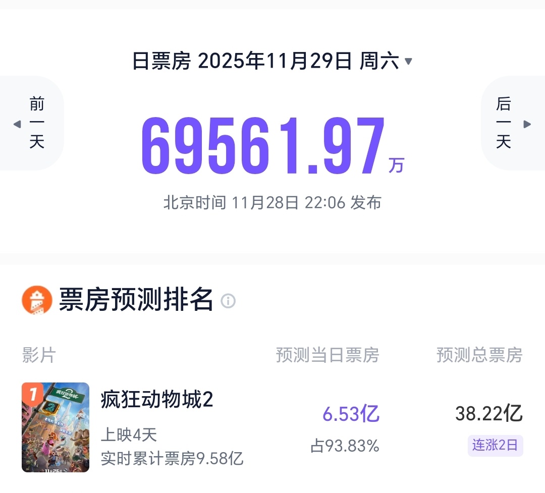 电影《疯狂动物城2》预测票房超38亿,明天周六预测超过6.5亿,这个IP是真的火