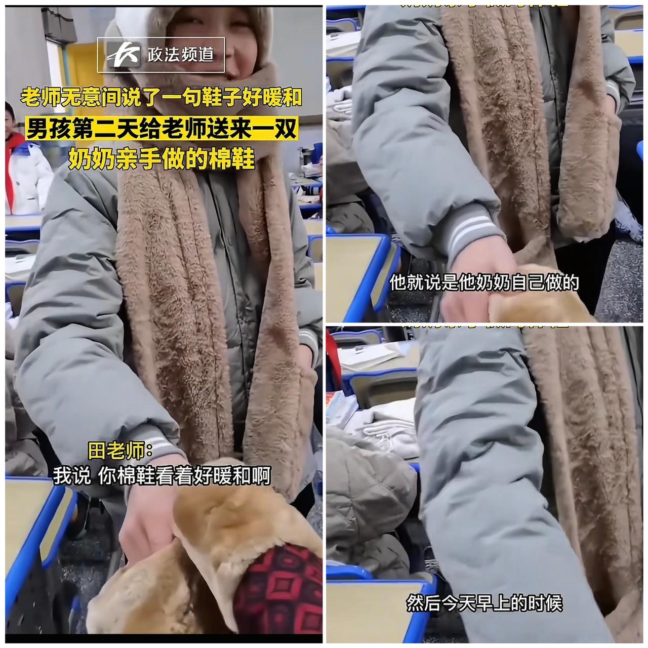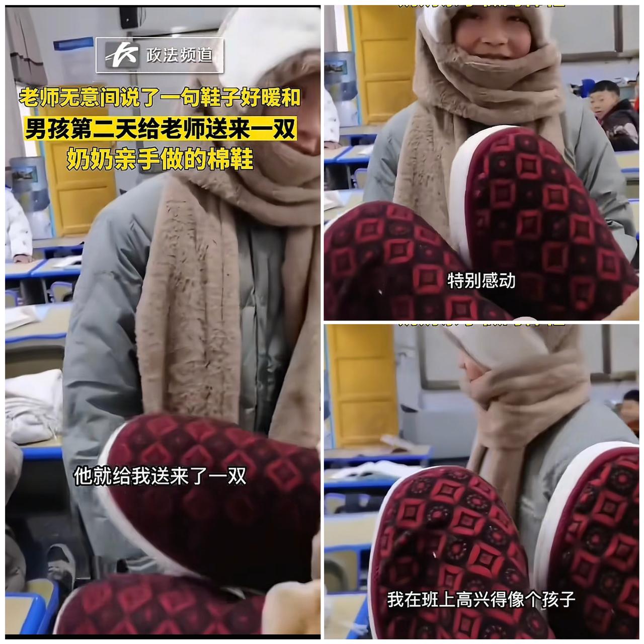 湖南湘西一女老师食堂吃饭时,随口夸了学生奶奶做的棉鞋好看暖和,第二天竟收到学生送的新棉鞋! 老师又惊又喜,一整天都乐得像孩子。这事儿在网上也引发热议,有老师分享类似经历,收到学生让奶奶做的鞋,感动不已。 这事儿可不简单,它背后藏着双向奔赴的爱。学生记得老师的好,是因为老师平时付出真心;老师感动,是感受到了孩子的感恩。这纯手工棉鞋,不仅暖和身体,更暖了心。 教育就该是这样,老师用心付出,孩子懂得感恩。这种暖暖的师生情,比啥都珍贵。大家身边有没有这样双向奔赴的师生故事呢?