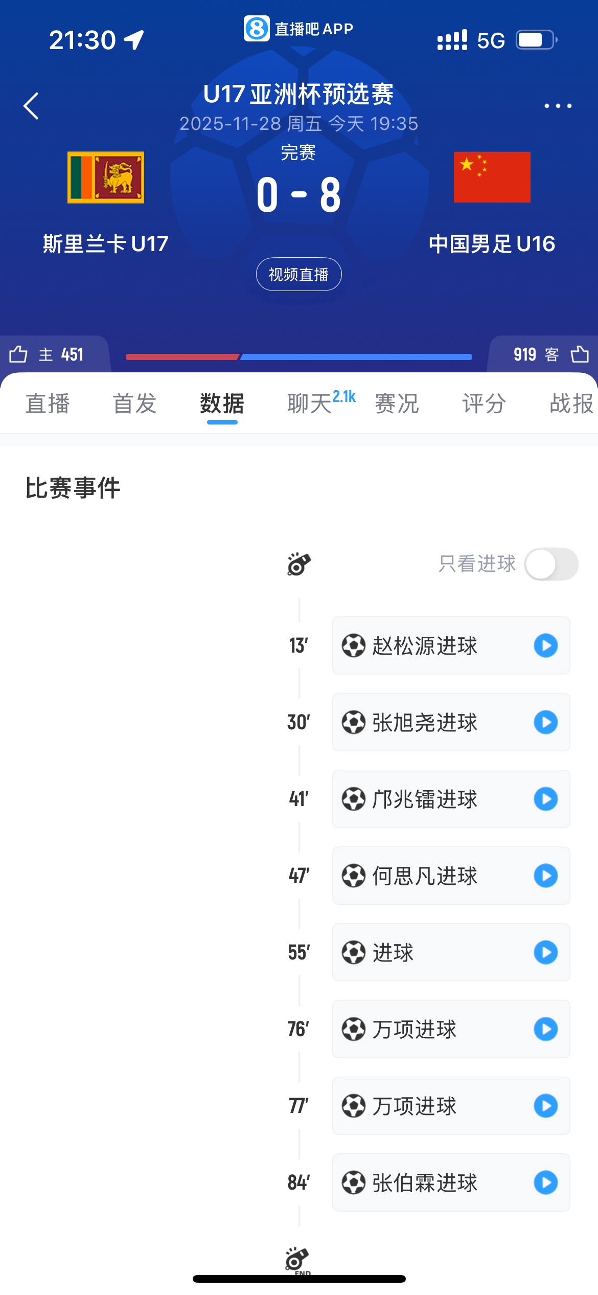 #U16国足4场进38球0失球#11月28日晚,2026亚足联U17亚洲杯预选赛,中国男足U16队对阵斯里兰卡男足U17队,全场比赛中国小将打进8球,零封对手。至此,国少已经在近4场比赛中打进38球,保持0失球。