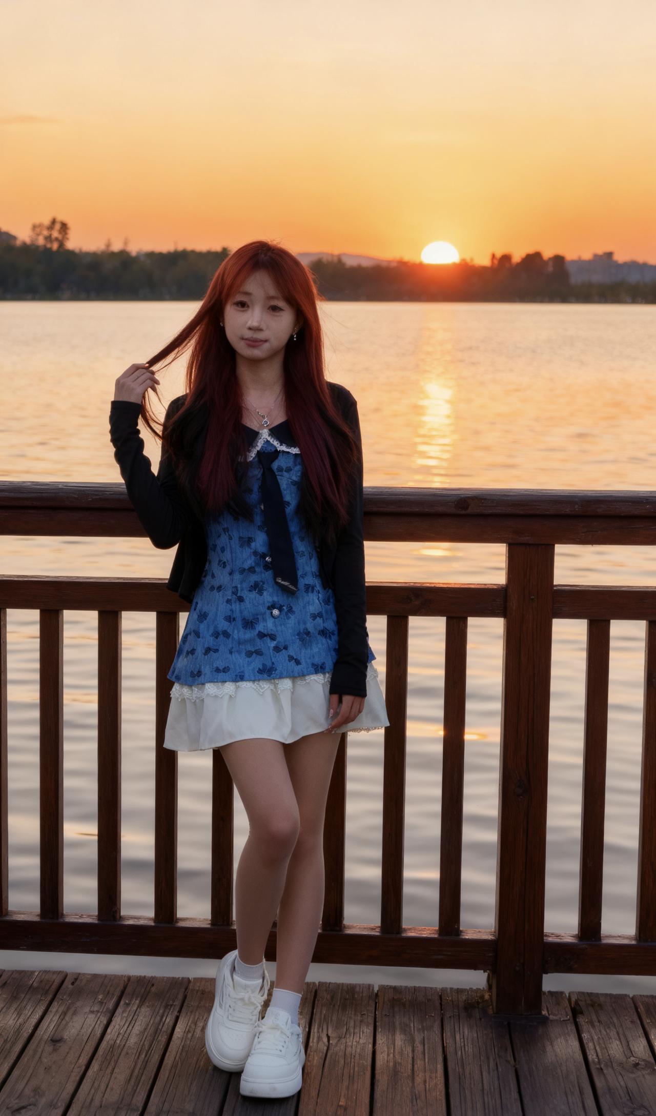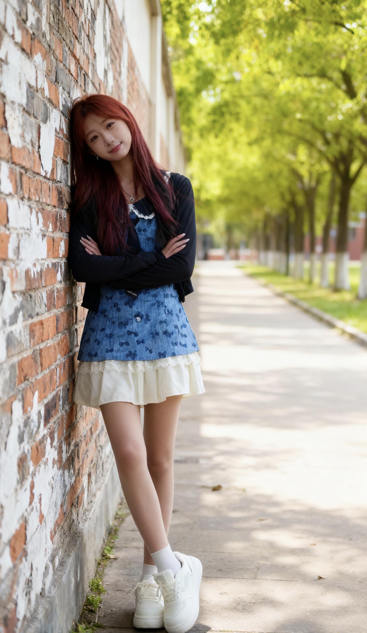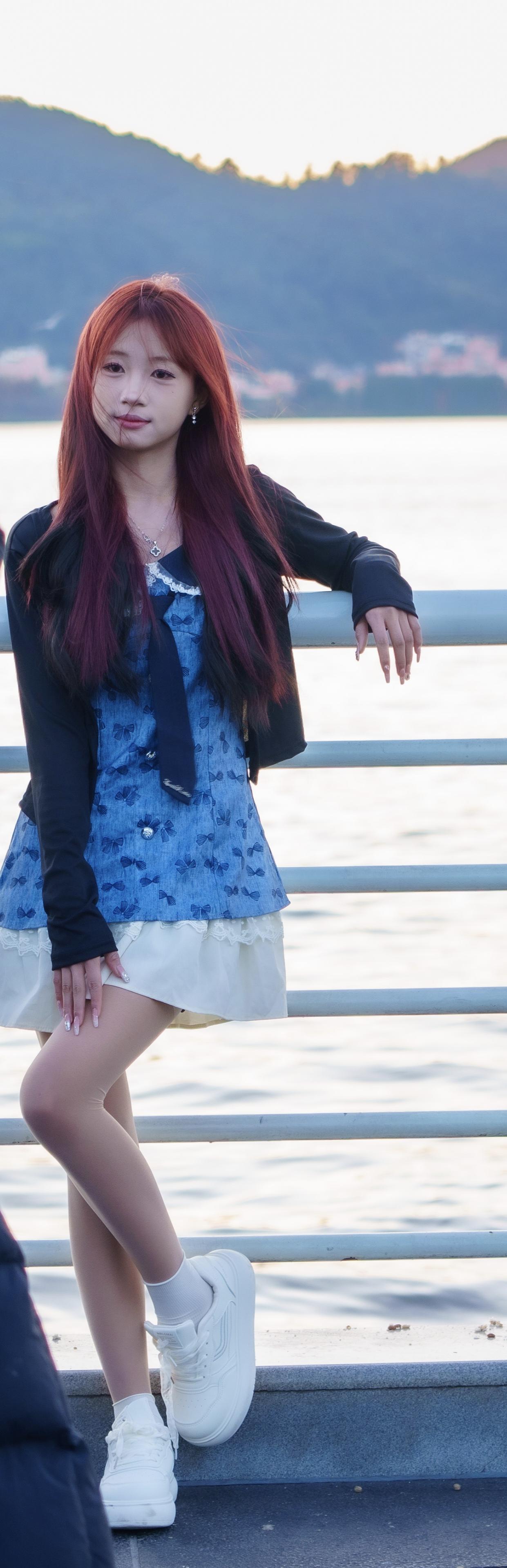 大一红发少女倚树远眺,山峦叠翠,心旷神怡。紫色头发少女 棕裙少女照 梦幻红发少女 红发女神穿搭